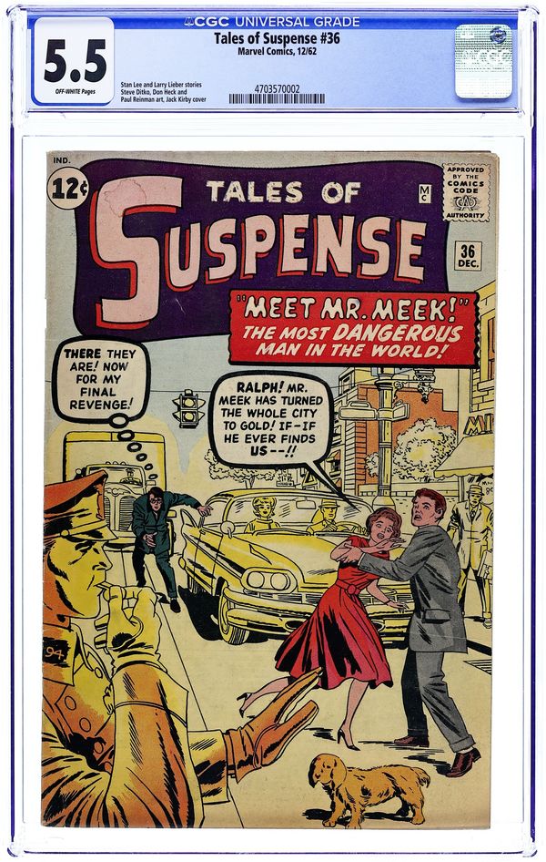 Cover pencils by Jack Kirby. "Meet Mr. Meek! The Most Dangerous Man in the World!", script by Stan Lee (plot) and Larry Lieber (script), art by Don Heck; A formula from an old book seems to give a man an uncontrollable power to turn objects into gold, but his friend figures out that it is actually an alien trick. "The Green Hat" text story. "The Final Weapon," art by Paul Reinman; A billionaire pretends to have invented an ultimate bomb to force the nations of the world to disarm. "The Gorilla from Outer Space!", script by Stan Lee, art by Steve Ditko; A ventriloquist makes it seem that a gorilla is talking, and finds out that the gorilla really is a sentient alien. 36 pages, full color. Cover price $0.12.