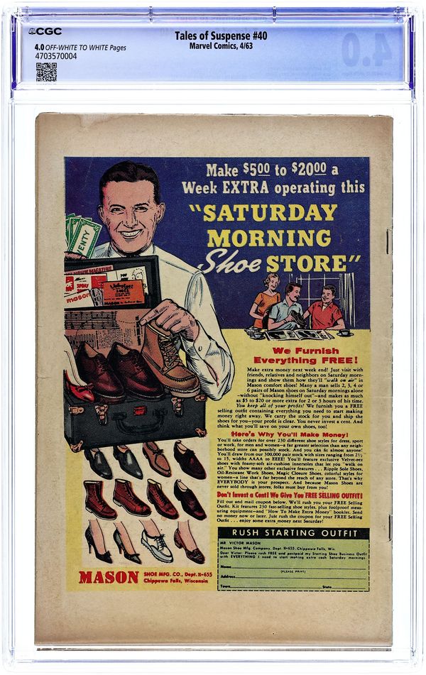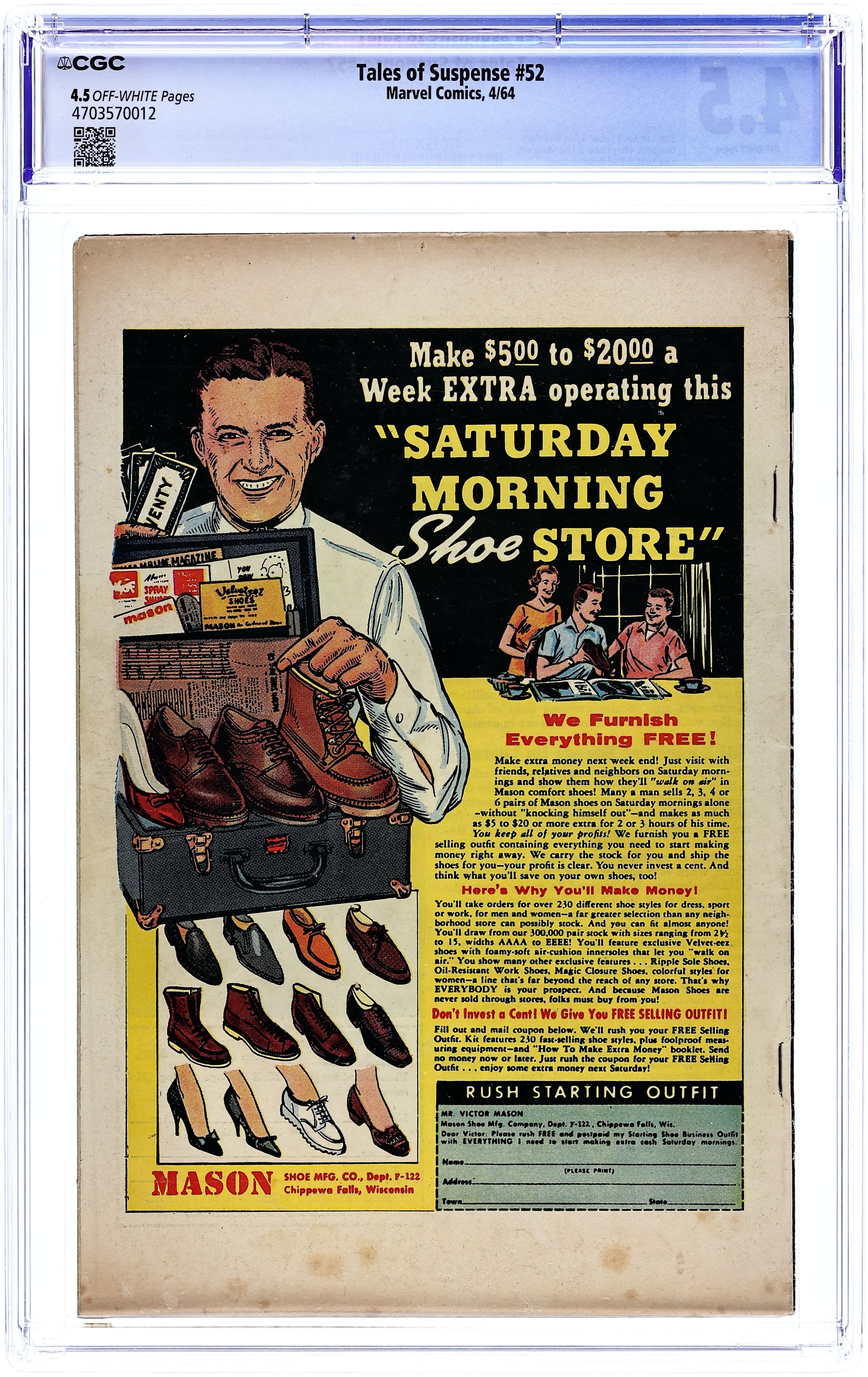 Tags: Marvel Legacy Numbering: Captain America (part 39), Marvel Legacy Numbering: Tales of Suspense (part 39), Iron Man$30,000- Paper: Off white