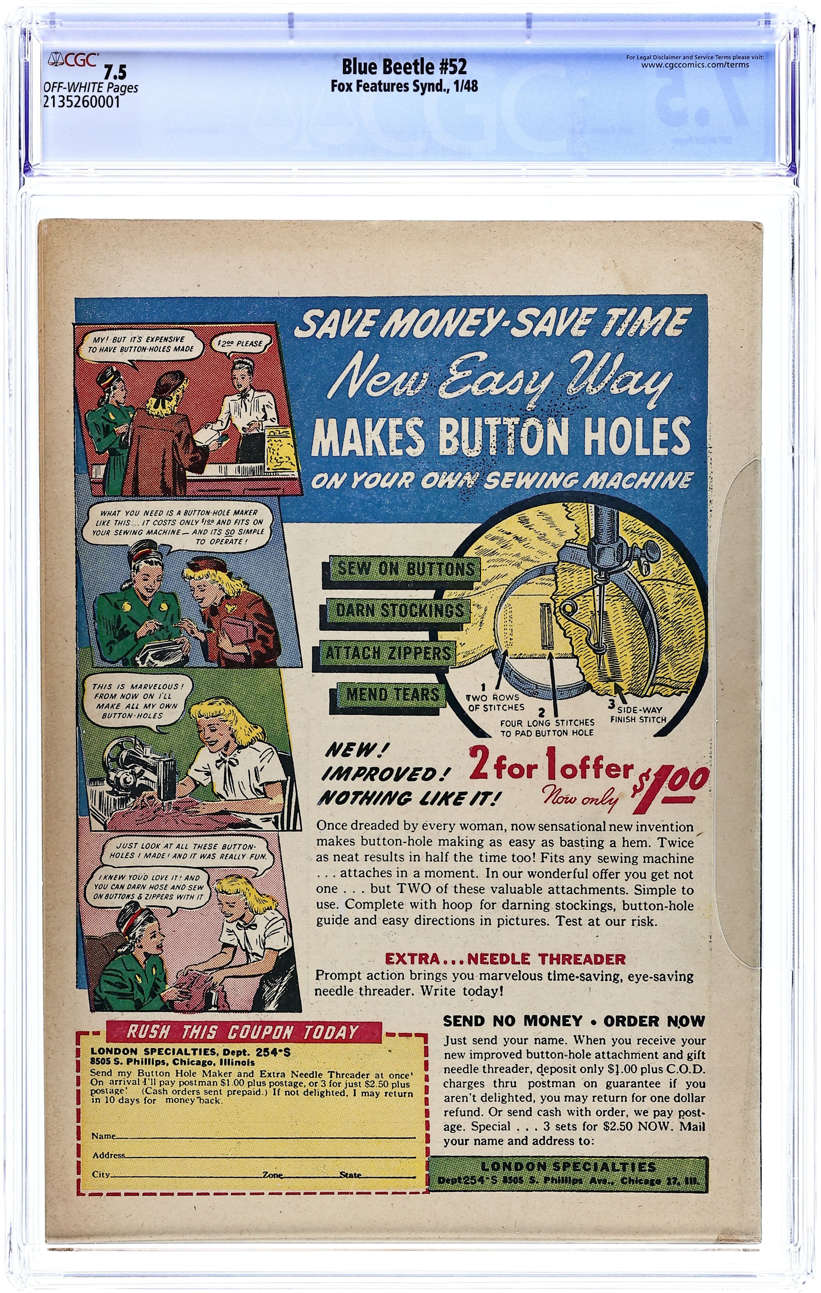 Cover art by E. C. Stoner [as Otis]. The Adventure of the Panting Photographer, art by Otis; Snapem stages accidents so he can get pictures of the Blue Beetle in action. The Case of the Bouncing Book, art by Otis; an unscrupulous publisher uses Mike's manuscript as a blueprint to commit crimes. The Threat From Saturn (Chapter 6): The Earthquake Maker, art by Otis; Beetle thinks Gloat and Saturnia are dead, but Gloat plans to use his earthquake maker to destroy the city. The Latest Fashion--In Crime starring Joan Mason, art by Art Allen. Saludos Amigos starring the O'Brine Twins, script and art by Larry Page. 52 pgs. $0.10. Cover price $0.10.