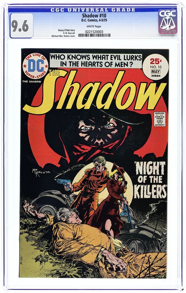 "The Night of the Killers." The Shadow and his agents battle a family of escaped fugitives who are wreaking havoc on the city. Script by Denny O'Neil, art by E.R. Cruz. Cover by Michael Kaluta. Cover price $0.25.