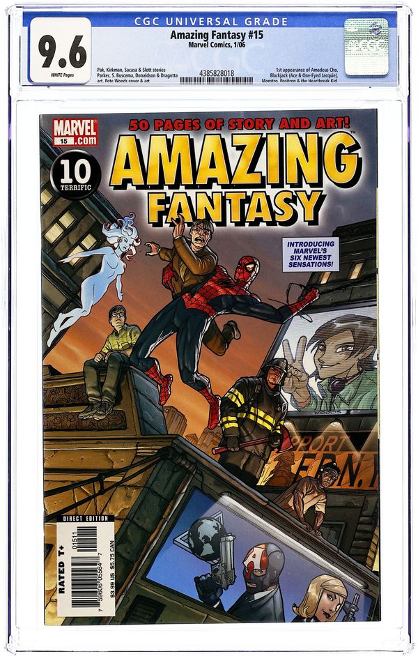 Direct Edition. Planet Hulk/World War Hulk tie-in (1st appearance of Amadeus Cho) - Written by DANIEL WAY, DAN SLOTT, GREG PAK, ROBERT KIRKMAN, & ROBERTO AGUIRRE-SACASA Penciled by PETE WOODS, NICK DRAGOTTA, JEFF PARKER, SAL BUSCEMA, KHARI RANDOLPH & TAKESHI MIYAZAWA Cover by PETE WOODS MILESTONE ISSUE: In the tradition of the original Marvel classic that debuted everyone's favorite wall crawler, we introduce a new generation of heroes in this 48-page special featuring five new stories by our hottest new writers. Will lightning strike twice? Is Marvel's next superstar in these very pages? A guaranteed blast of comic book fun! Cover price $3.99.