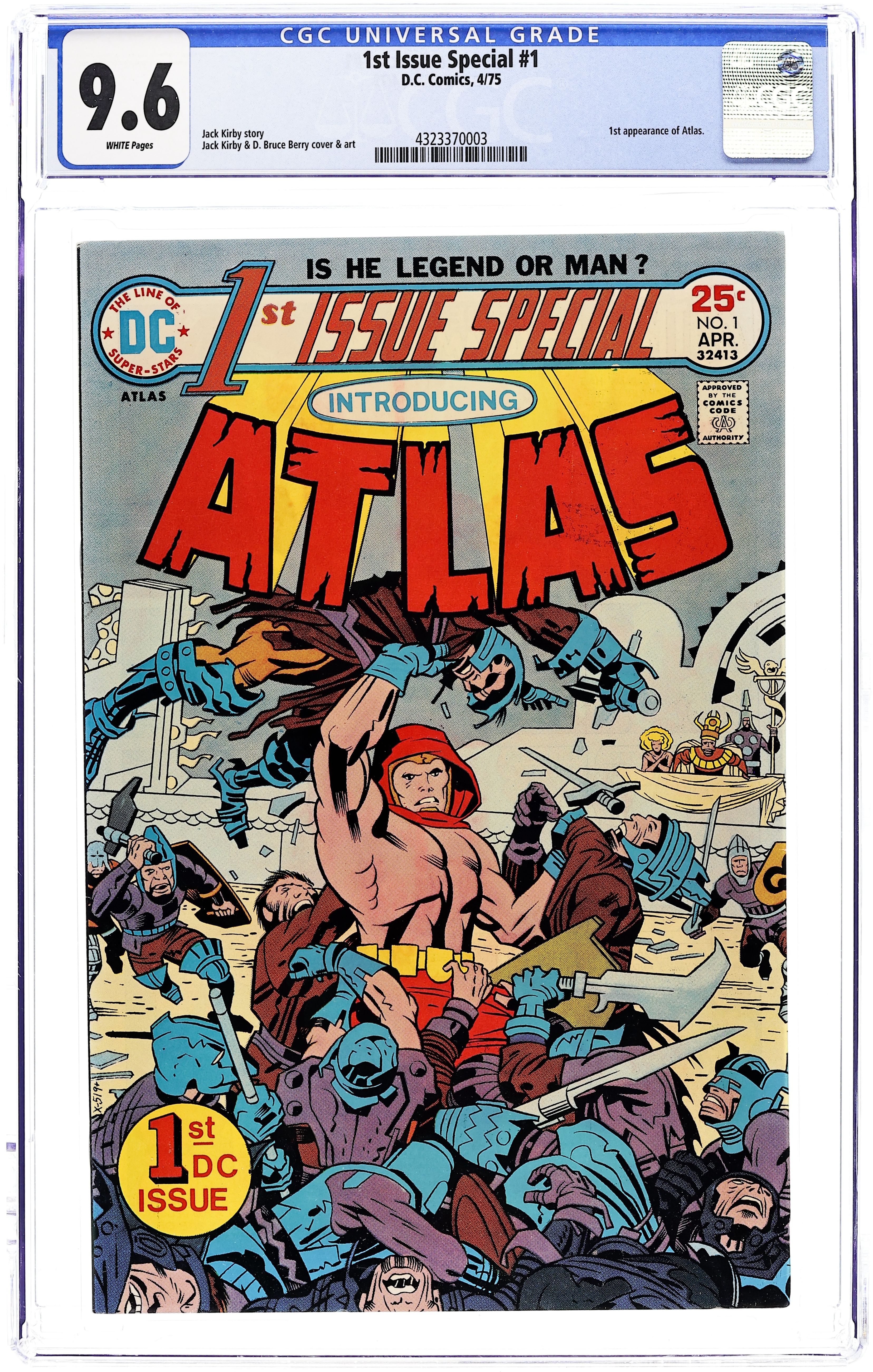 "Atlas the Great!" While traveling far and wide, performing feats of strength for a living, Atlas finds the man who demolished his hometown. This series, similar to (but far less successful than) Showcase, was a spotlight for new and assorted characters. Script and pencils by Jack Kirby, inks by D. Bruce Berry. Cover by Kirby. Cover price $0.25.