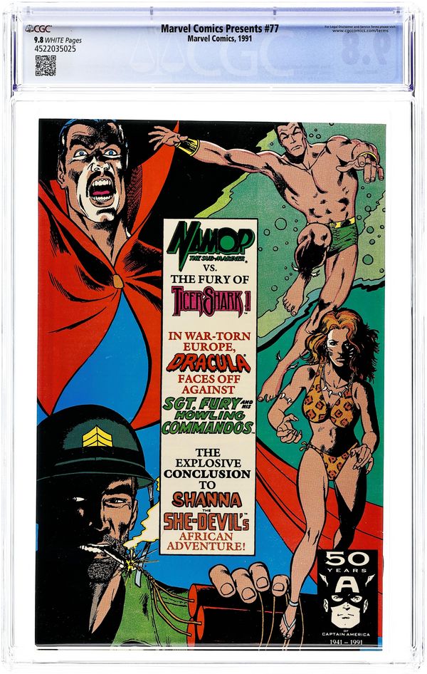Direct Edition. Cover art by Barry Windsor-Smith. Weapon X (chapter 5), script and art by Barry Windsor-Smith. A Place In the Wilderness (The Bush of Ghosts part 10) starring Shanna the She-Devil, script by Gerard Jones, pencils by Paul Gulacy, inks by Gary Martin. Rude Awakening (Rumanian Rumble part 1) starring Sgt. Fury and Dracula, script by Doug Murray, pencils by Tom Lyle, inks by Joe Rubinstein and Art Nichols. The Tides That Bind starring The Sub-Mariner, script and inks by Robert Campanella, pencils by Grant Miehm. 36 pgs. Cover price $1.25.