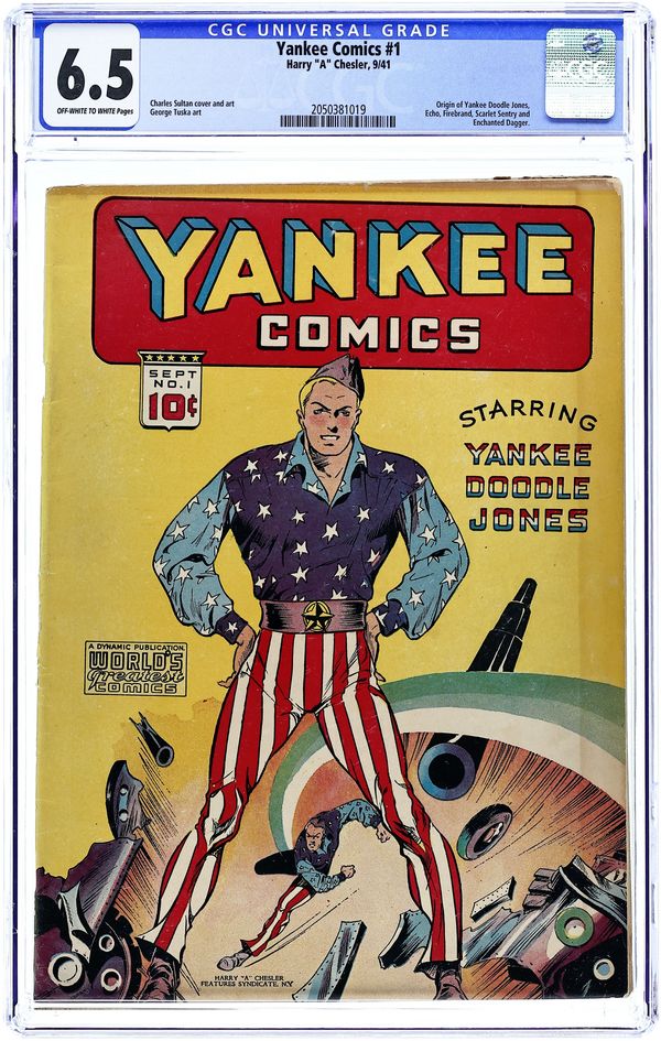 Yankee Doodle Jones and Dandy in "The Case of the Strangling Hair," the Echo (with Dr. Doom--not the Marvel villain), the Firebrand, Scarlet Sentry, Black Satan, the Enchanted Dagger, Nemo in Slumberland, and Sergeant Steele. Packaged by Harry A. Chesler Features Syndicate; no art credits are listed, but the work is similar to that produced by the Eisner & Iger Studio (Lou Fine, Will Eisner, et al.). Cover price $0.10.