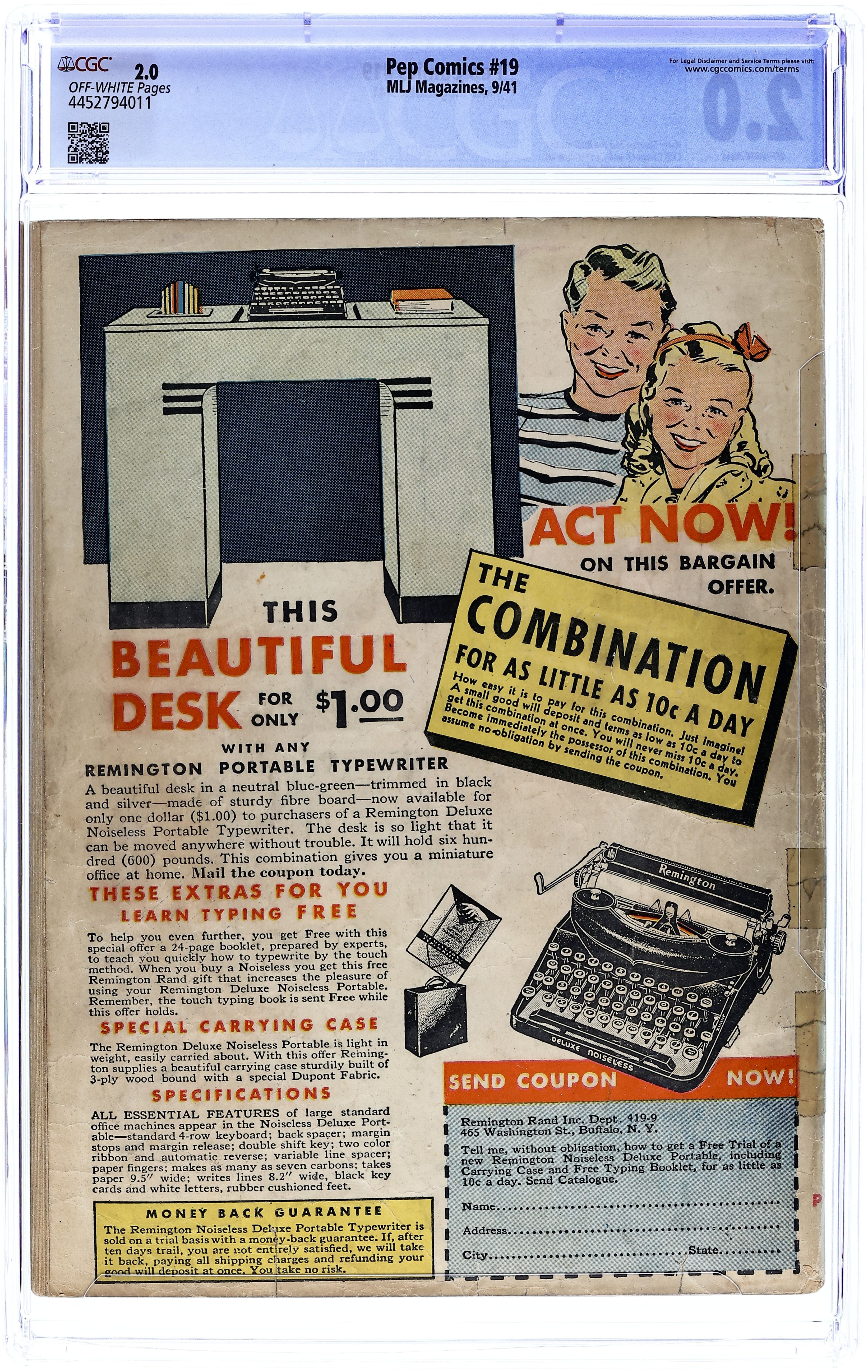 Published Sep 1941 by MLJ Magazines.$1,500.00