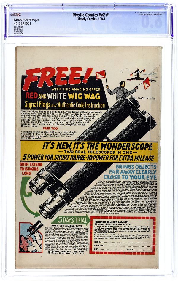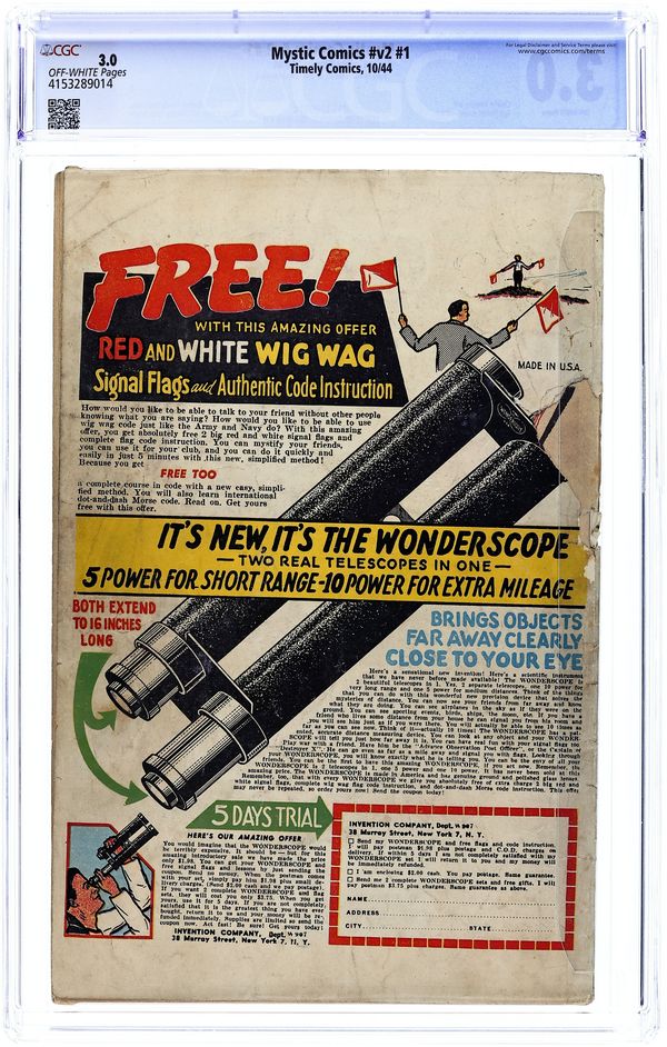 Published Oct 1944 by Nedor/Better Publications.$6,700.00- Paper: Off white to white