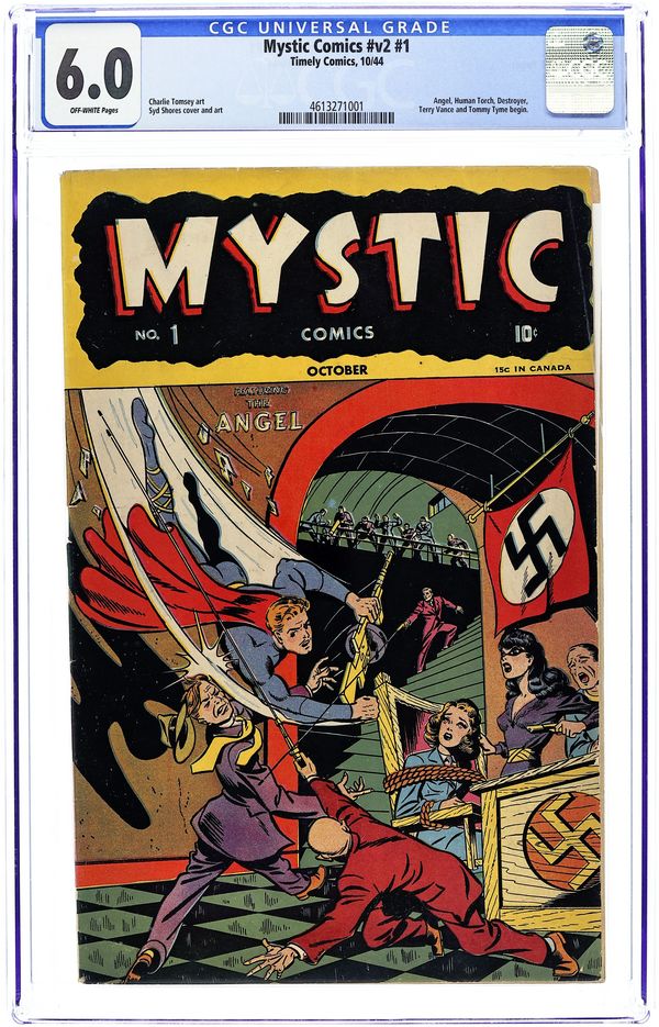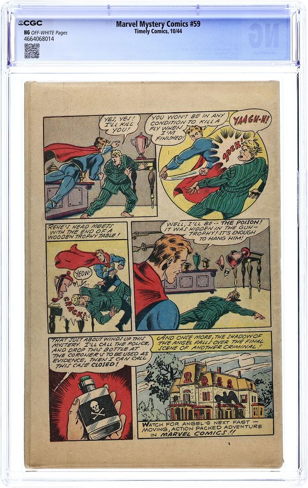 Cover art by Alex Schomburg. Madman of Terror Mountain starring Human Torch, art by Jimmy Thompson. Case of the Electric Killers starring Sub-Mariner, art by Allen Simon. The Horror of the Secret Weapon starring Miss America, script by Otto Binder, art by Charles Nicholas. Escape to Freedom text story. The Case of the Vanishing Head starring Patriot, art by Al Bellman. The Talking Corpse starring Angel, art by Gustav Schrotter. 52 pages. Cover price $0.10.