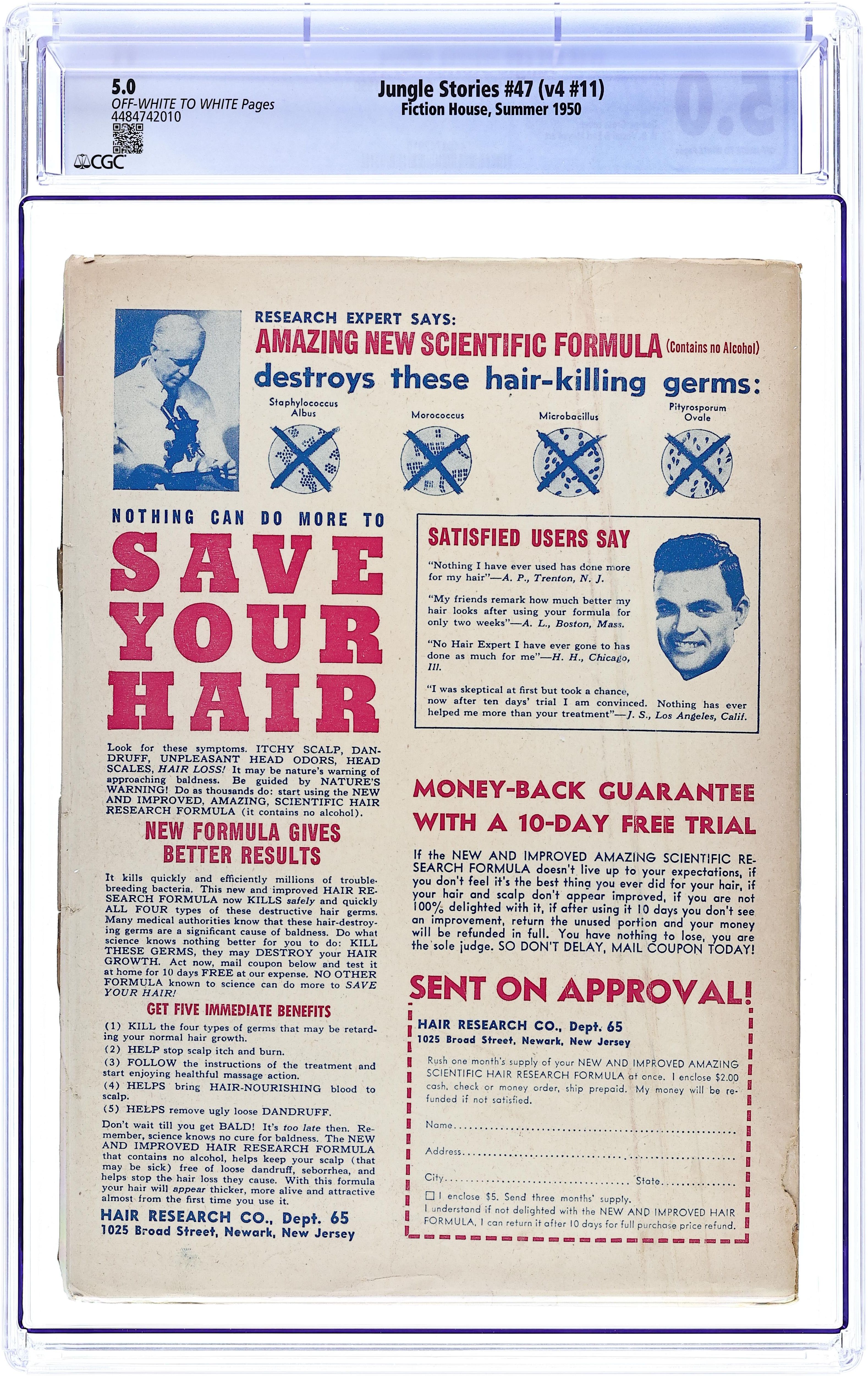 Published Jun 1950 by Fiction House.Jungle Stories (1938-1954 Fiction House) Pulp 2nd Series Vol. 4 #11 CGC 5.0
