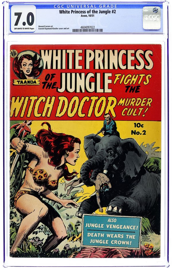 Everett Raymond Kinstler art in two stories, "Jungle Vengeance" and "Death Wears the Jungle Crown," plus inside front cover. Other stories include "The Witch Doctor Murder Cult" and "The Strange Mission to Ormuz." Origin of Malu, Slave Girl Princess is reprinted. Kinstler cover. Cover price $0.10.