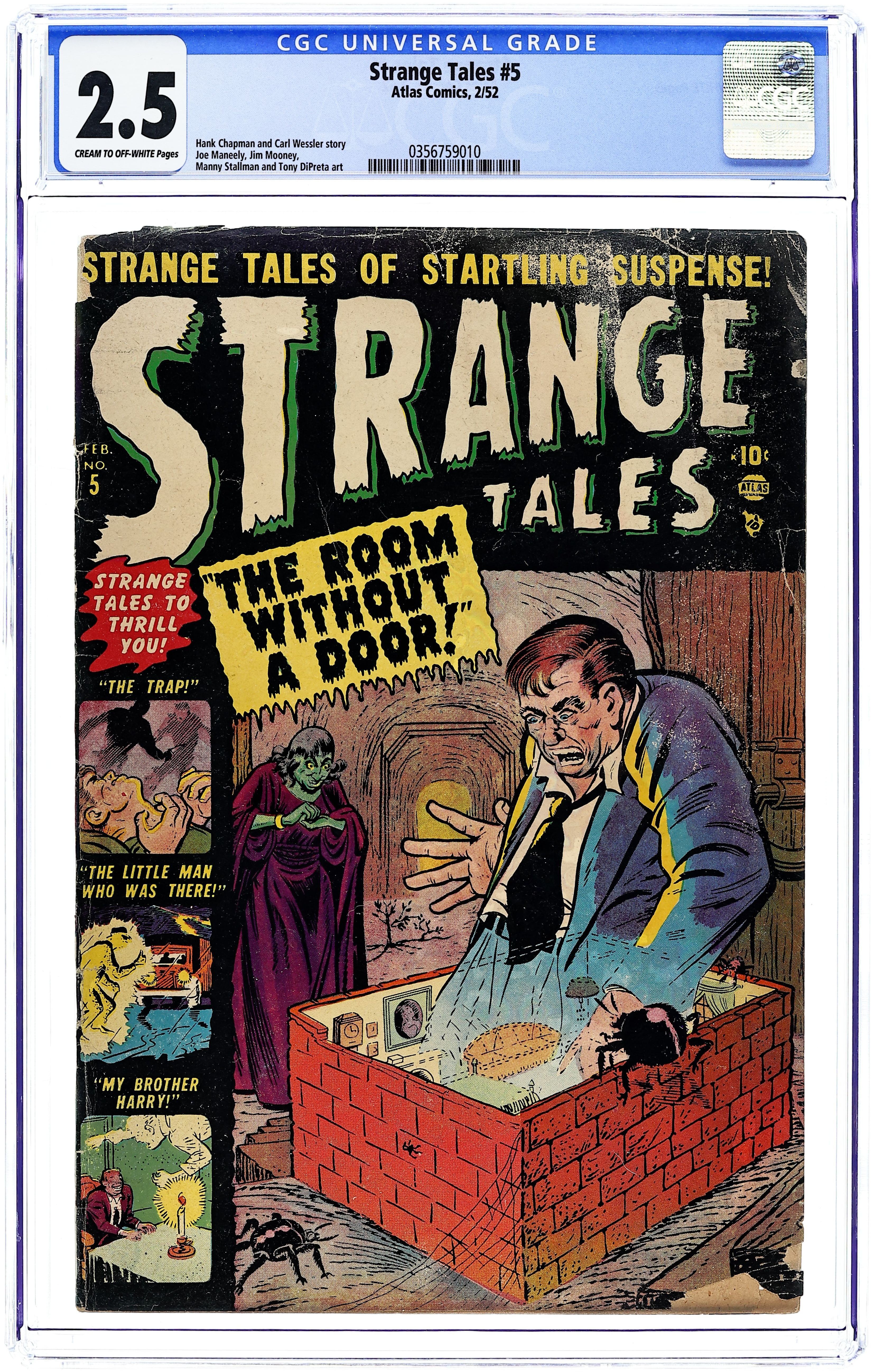 The Room Without a Door, script by Hank Chapman, art by Joe Maneely; A scientist rejects science as useless for discovering the secret of time travel and turns to black magic instead; When he hears of a woman related to a witch burned in 1692 living nearby, he spies on her through a window and sees her summon the ghost of her ancestor. Welcome To the Werewolves text story. Little Man Who Was There, art by Jim Mooney; Dennis Ames keeps seeing a strange little man just before some disaster happens that he narrowly escapes, and he eventually comes to realize that he can't escape forever, because the little man is Death. The Trap, script by Carl Wessler, art by Manny Stallman. My Brother Harry, art by Tony DiPreta. 36 pgs. $0.10. Cover price $0.10.