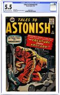 Cover by Jack Kirby and Dick Ayers. I Was Captured by the Creature from Krogarr!, art by Jack Kirby and Dick Ayers; A dissolute human is targeted by an alien that can transport items through television sets, but he is saved by his failure to pay the electric bill. The Party text story. Behold Him! He Is the Martian!, art by Jack Kirby and Dick Ayers; A spy from Jupiter disguised as a human stows away on the first rocket from Earth to Mars. The Gypsy's Revenge!, art by Don Heck; An American criminal robs an old gypsy man, ignoring his pleas and curses. Where Lurks the Ghost!, script by Stan Lee, art by Steve Ditko; A man spends the night in a haunted house with the houses caretaker. 36 pgs., full color. $0.10. Cover price $0.10.