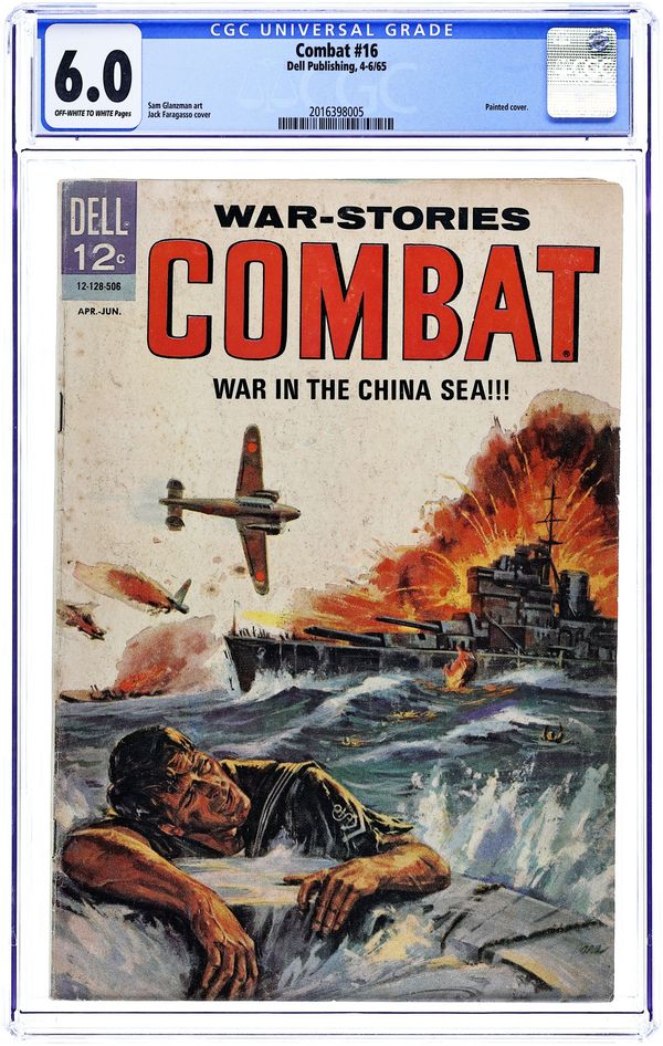 Painted cover by Jack Faragasso. Stories by Paul S. Newman and others. Art by Sam Glanzman and others. Unlike other war comics of the era, Dell's Combat focused on the events of historic battles, rather than war fiction, with art by WWII veteran and comics legend Sam Glanzman. A comics history of the Battle in the China Sea. Plus a comics history of the U.S.S. Stevens. Escape. Battle in the China Sea; General Billy Mitchell; Escape. 32 pages, Full Color. Cover price $0.12.