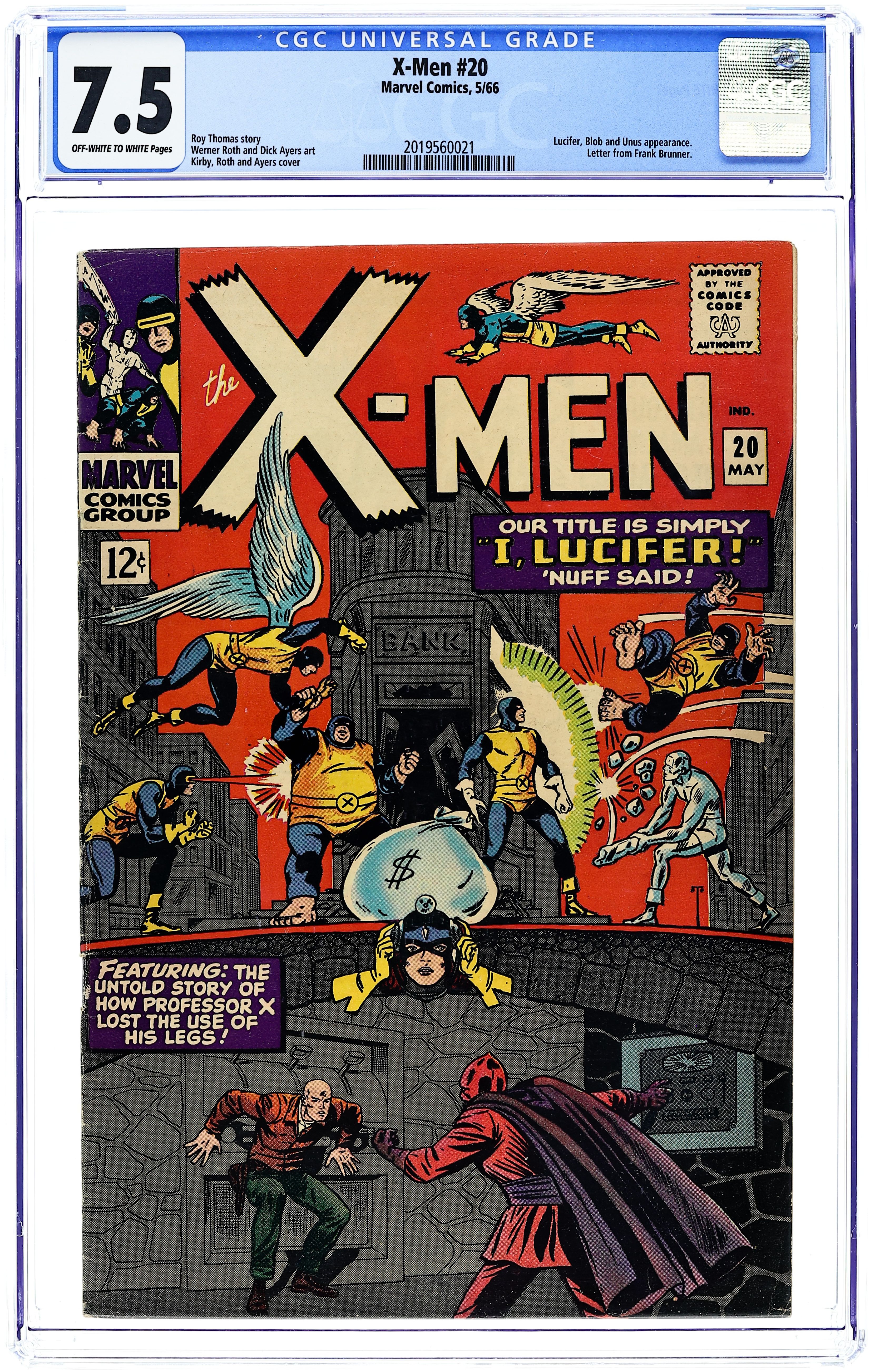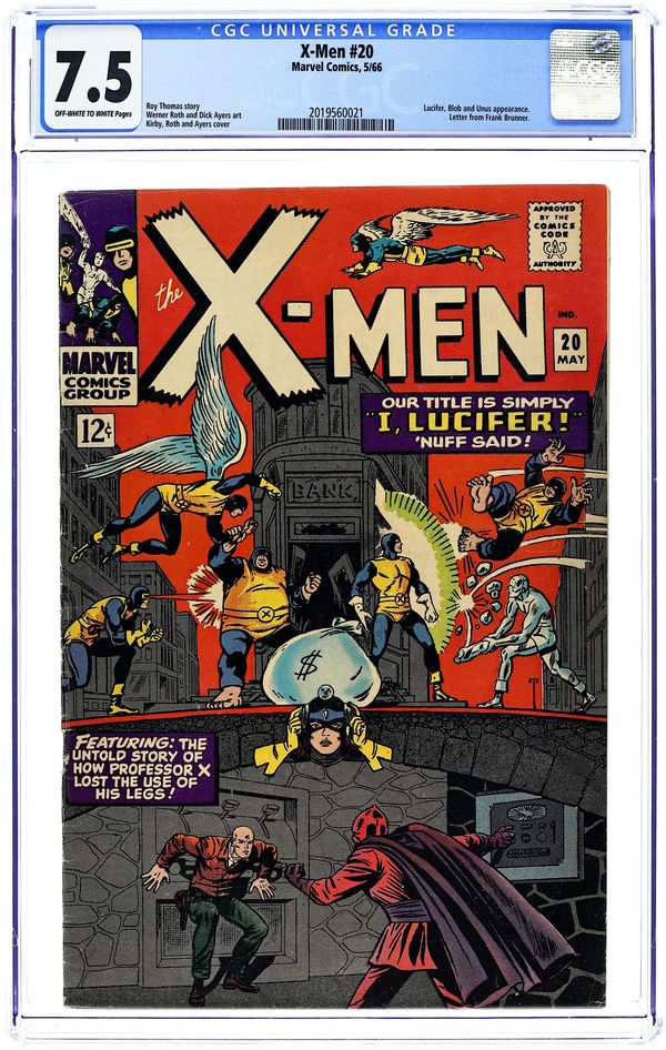 Cover pencils by Werner Roth, inks by Dick Ayers. I, Lucifer..., script by Roy Thomas, pencils by Werner Roth (as Jay Gavin), inks by Dick Ayers; Story of how Prof. X lost use of legs. Continued in X-Men 21. Letter to the editor from comic artist Frank Brunner. 36 pgs. $0.12. Cover price $0.12.