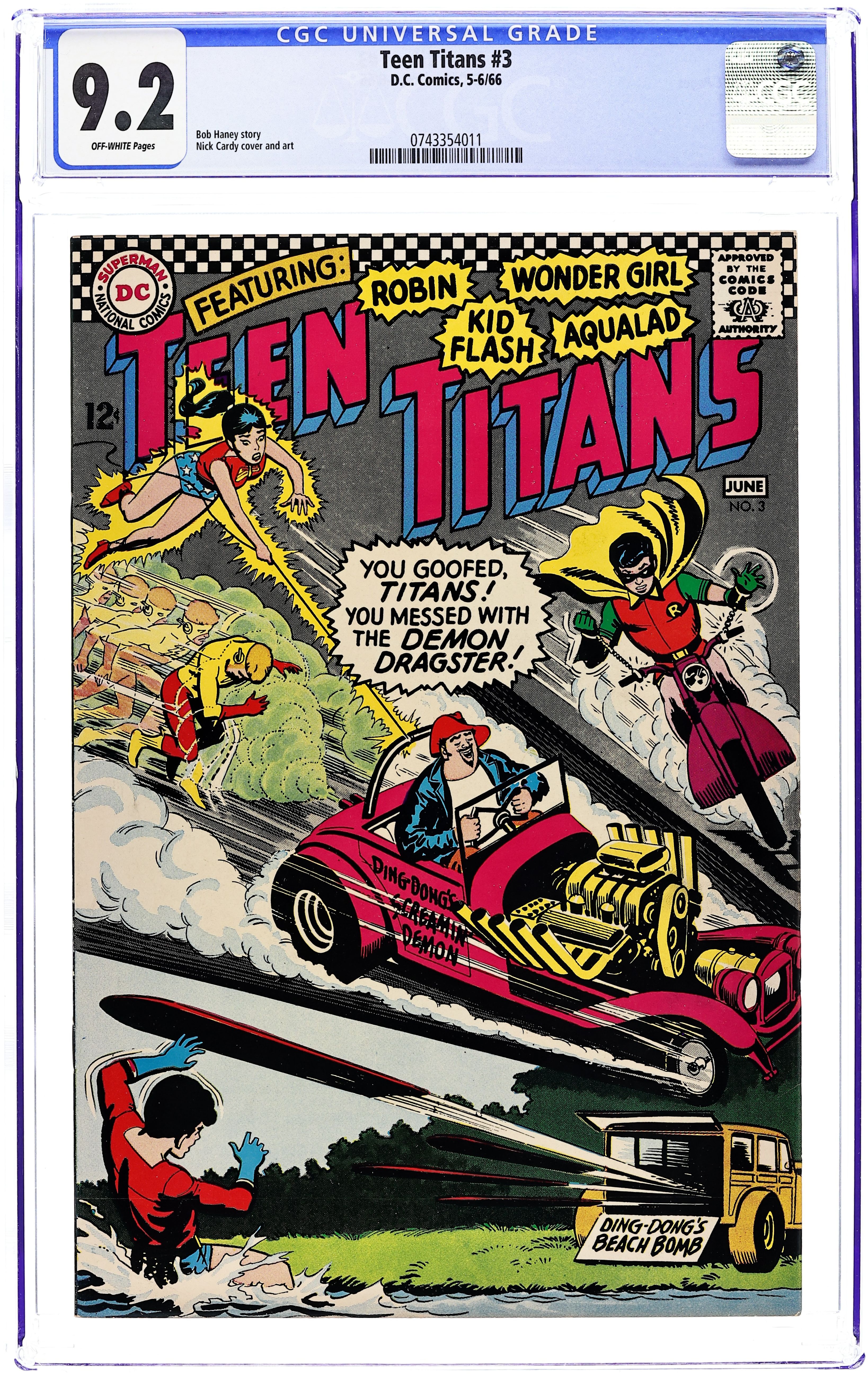 Written by Bob Haney. Art and cover by Nick Cardy. The Titans help the President's commission on Education deal with dropouts. Ding-Dong Daddy Dowd has been hiring dropouts to help in his hot-rod shop. The dropouts don't know, but their work is going into getaway cars for other criminals. "Ding Dong Daddy Dowd" is a gentle spoof of, or tribute to, "Big Daddy" Ed Roth. Cap's Hobby Hints by Henry Boltinoff. 36 Pages, Full Color. Cover price $0.12.