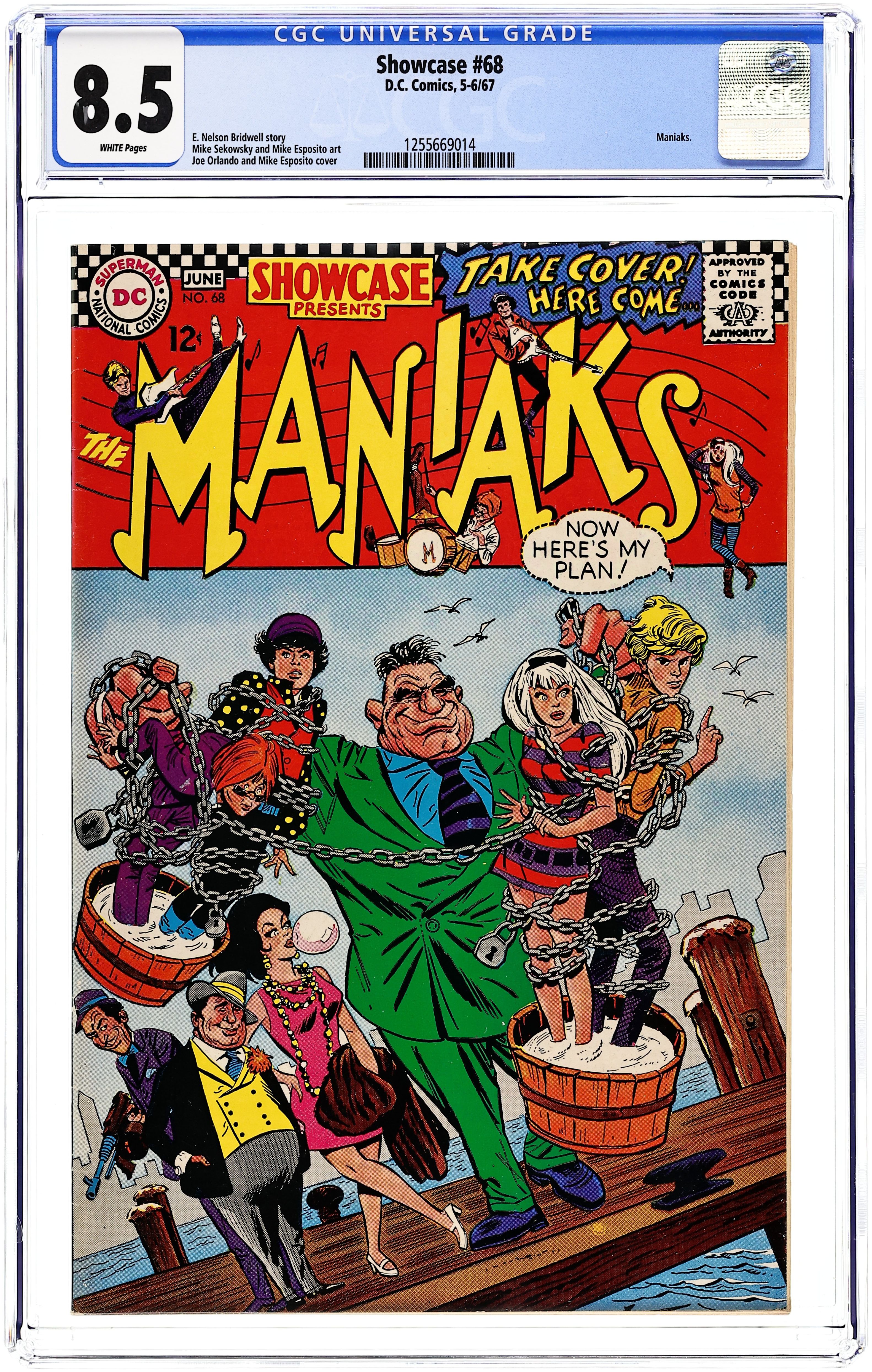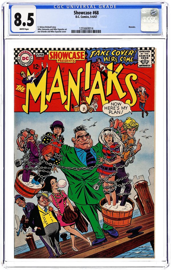 Cover pencils by Mike Sekowsky, inks by Mike Esposito. A Crooks' Tour of Palisades Amusement Park! or, How to Cook a Goose!, script by E. Nelson Bridwell, pencils by Mike Sekowsky, inks by Mike Esposito; The Maniaks are "not to be confused with the Beatles, the Monkees, or anyone in his right mind!"; Jangle can do sound effects and impressions; Pack Rat is a gadgeteer; Flip is a contortionist; And Silver Shannon is "The Mod Miser", a golddigger; They perform at Palisades Park, mobbed by teenage girls! Ad for Challengers of the Unknown #56. Cap's Hobby Hints by Henry Boltinoff. Ad for Superboy 138, an 80-Page Giant. Part II You Have to Use Your Noodle When You're in the Soup!, script by E. Nelson Bridwell, pencils by Mike Sekowsky, inks by Mike Esposito; The Flips run from two gangs; Pack Rat cobbles a pop-gun and fishhooks to make a grapple to snag the cable car; Flip bounces so much gangsters can't nail him; Pack Rat cobbles an electro-magnet to catch bullets. Ad for The Adventures of Bob Hope #105 and The Adventures of Jerry Lewis #100. Part III. Next on the Menu--Just Desserts, script by E. Nelson Bridwell, pencils by Mike Sekowsky, inks by Mike Esposito. Ad for Metamorpho #12, art by Ramona Fradon. Ad for Aurora The Rat Patrol model kit. 36 Pages, Full Color. Cover price $0.12.