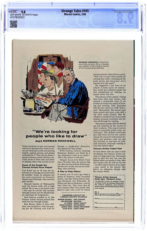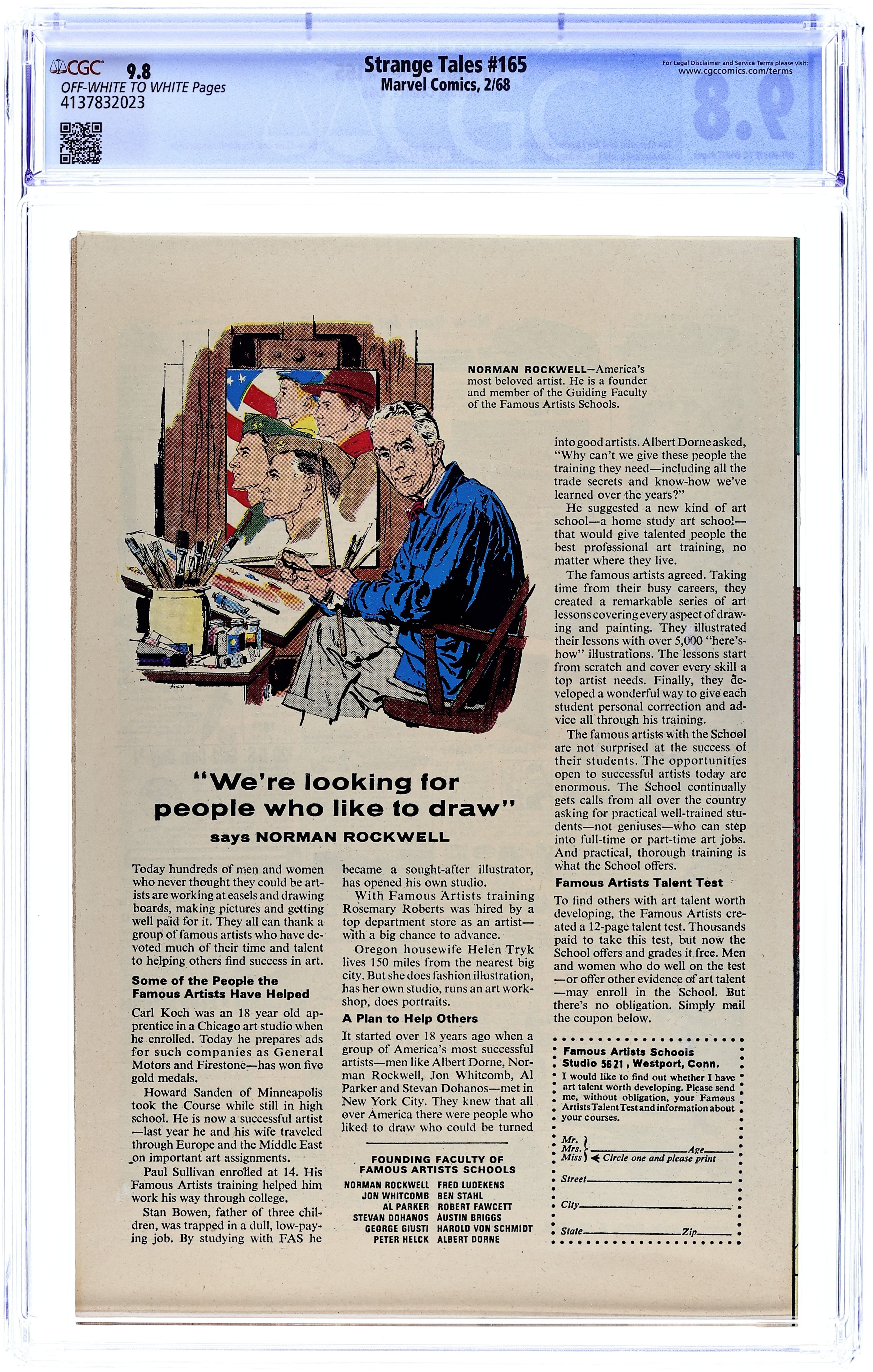 Tags: Marvel Legacy Numbering: Doctor Strange (part 165)Strange Tales (1951 1st Series) 165 CGC 4.0 JSA Steranko