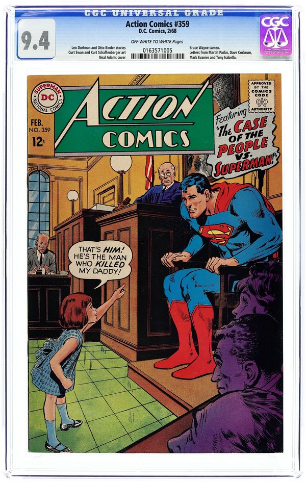Cover by Neal Adams. "The Case of the People Against Superman!", script by Leo Dorfman, pencils by Curt Swan, inks by George Klein; Superman stands trial for the accidental killing of Ron Noble. Half-page ad reproducing Neal Adams pencils to the cover of Lois Lane #81. Letters to the editor from comic writers Mark Evanier, Martin Pasko, and Tony Isabella, and from comics artist Dave Cocrkum. The letters page also contains a statement of ownership - average print run 720,000; average paid circulation 420,900. Superman ad. "The Super-Initiation of Supergirl!", script by Otto Binder, art by Kurt Schaffenberger; When Supergirl finds out that the Xi-Pi-Hi-Fi sorority is engaged in brutal hazing, she applies to join and turns the tables on the bullies. 36 Pages, Full Color. $0.12 Cover price $0.12.