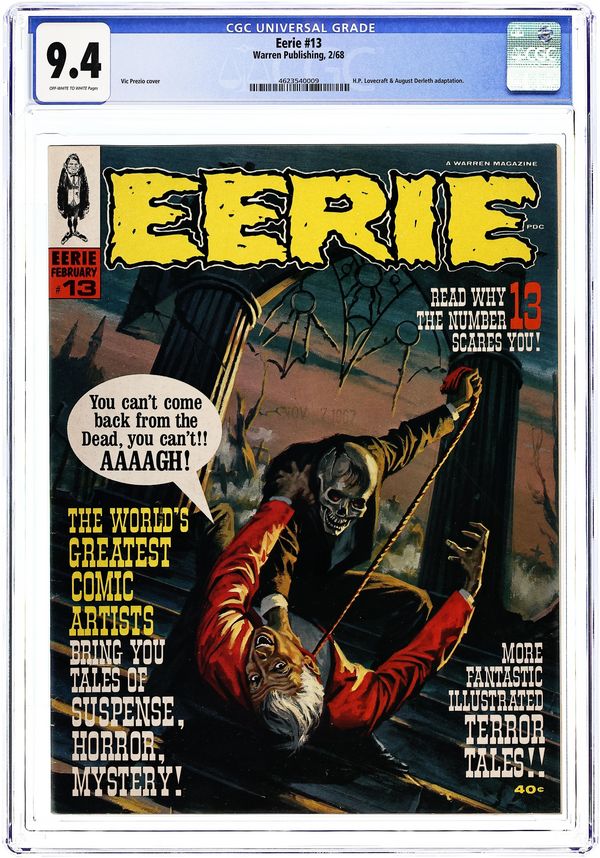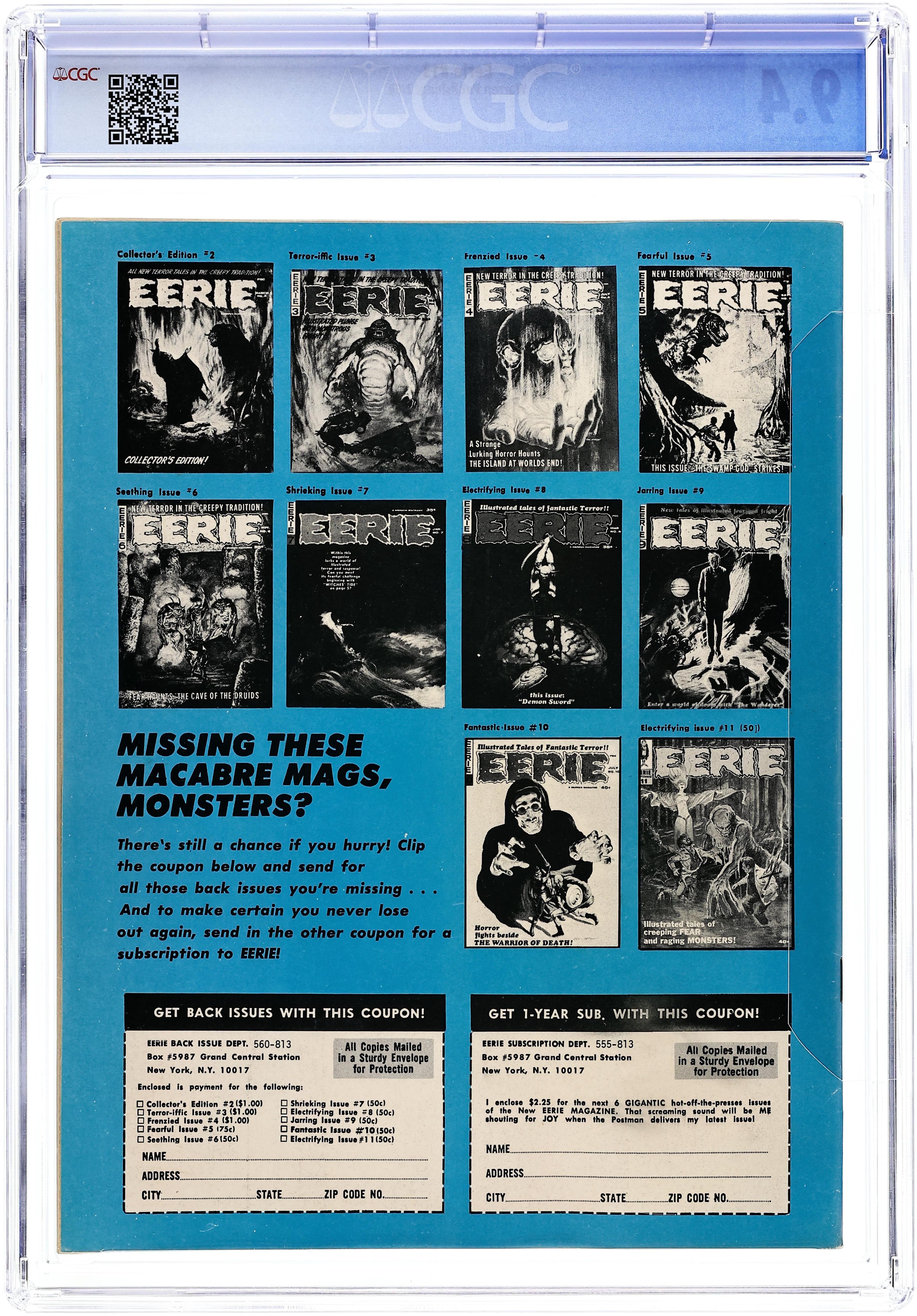 Stories in this issue include: Wentworth's Day (written by H.P. Lovecraft and August Derleth); Ogre's Castle, The Tell-Tale Heart (based on the Poe story); Voodoo; and Spawn of the Cat People. Contributors include Archie Goodwin, Russ Jones, Bill Pearson, Joe Orlando, Al Williamson, Reed Crandall, and Angelo Torres. Cover art by Vic Prezio. Cover price $0.40.
