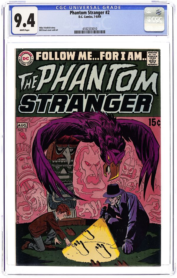 First 15-cent cover price. Cover art by Bill Draut. "The Man Who Died Three Times!", script by Otto Binder, art by Bill Draut; Young Billy Hatton watches his father Cyrus Hatton wander off in a stupor; He gets into his car and crashes into a nearby bridge; Horror-stricken, Billy runs home to tell his mom that his father had died; The Phantom Stranger appears and decides to investigate this spectacle. "The House of Strange Secrets," script by John Broome, pencils by Carmine Infantino, inks by Joe Giella; Stage magician Robart lures a traveler to his house; He wants to kill him and be able to cast a black magic spell; The Phantom Stranger appears on the scene, protects the innocent man and foils Robarts evil plans. "The Girl Who Lived 5,000 Years," script by Ed Herron, art by Leonard Starr; Dr. Thirteen once learned of the existence of a 5,000 year old Babylonian woman named Tateeka who came to life once every one-hundred years at Lamson Manor; A resident of the manor, Mister Hendricks would charge men one-thousand dollars for a life-changing experience with Tateeka; But each of these men would soon commit suicide not long after dating Tateeka. "Fact File #8" article about The Spectre. 36 pgs., full color. Cover price $0.15.