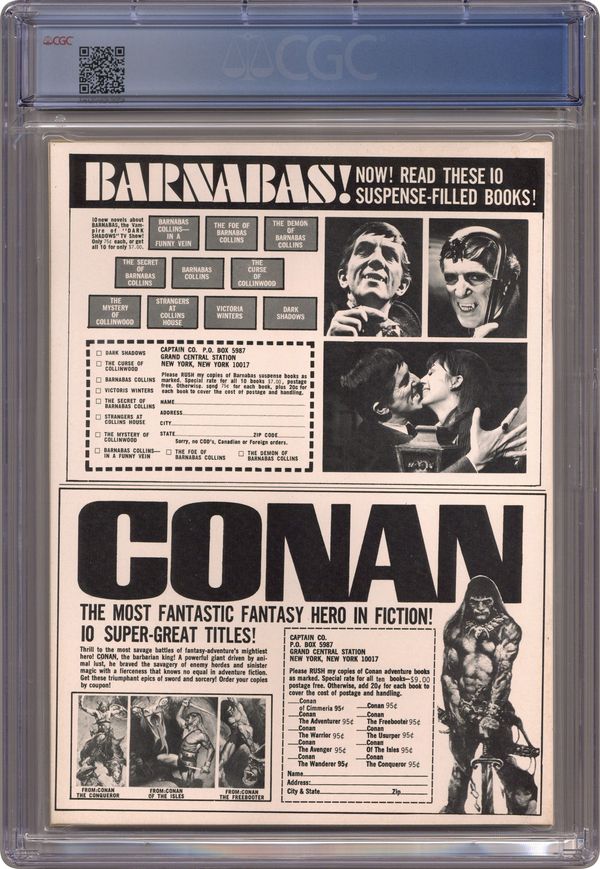 Cover pencils by Marie Severin, inks by Mike Esposito. First appearance of Orka in "The Coming of Orka," script by Roy Thomas, pencils by Marie Severin, inks by Johnny Craig; Returning to his undersea realm, Namor comes across a large herd of killer whales, led by the monstrous Orka, and takes him on; Namor is defeated by Orka, but follows him and discovers that Dr. Dorcas and Krang are actually behind Orka's powers, and are planning an attack on Atlantis; Namor gains the upper hand by threatening Krang's life which prompts Orka to turn against Dorcas; However, Namor's plan comes undone and he's taken down hard by Orka; Following Krang's orders, Orka puts a stun-collar and chains on the Sub-Mariner; Krang then announces an intention of marching into Atlantis with an enslaved Namor. 36 pgs., full color. $0.15. Cover price $0.15.