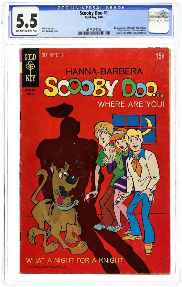 Number/month on cover: 10252-003/March. Cover by Jack Manning. Stories by unknown. Art by Phil De Lara. Based on the 1969-1970 TV series. In this issue: "What a Night for a Knight" - Coming home late from the movies, Shaggy and Scooby discover an abandoned truck with a mysterious crate. In it is a suit of armor, the Black Knight, which appears to come to life under a full moon. Characters in this story: Scooby Doo; Shaggy; Velma; Daphne; Fred; Professor Hyde White; Mr. Wikles. Plus: "Never Ape an Ape-Man" - Scooby and the gang are visiting the location set of the film The Ape-Man of Forbidden Mountain. Daphne's uncle, John Maxwell, is glad to have the gang as extras, as no other actors will work on the film. Apparently, there is a real Ape-Man scaring everyone off. Characters in this story: Scooby Doo; Shaggy; Velma; Daphne; Fred; John Maxwell; Carl the Stuntman; The Ape-Man. 32 pages, full color. Cover price $0.15.