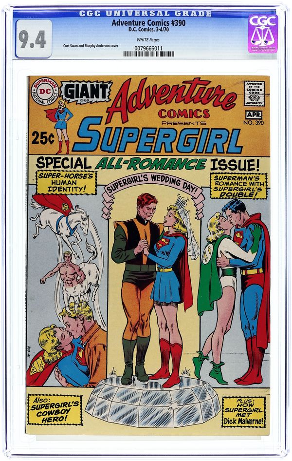 Giant-sized all-romance, all-reprint issue. Cover pencils by Curt Swan, inks by Murphy Anderson. When Supergirl Played Cupid, script by Jerry Siegel, art by Jim Mooney. The Secret Identity of Super-Horse, script by Leo Dorfman, art by Jim Mooney. Supergirl's Cowboy Hero, script by Leo Dorfman, art by Jim Mooney. The Great Supergirl Mirage, script by Otto Binder, art by Jim Mooney. Supergirl's Wedding Day, script by Leo Dorfman, art by Jim Mooney. 68 Pages, Full Color. Cover price $0.25.