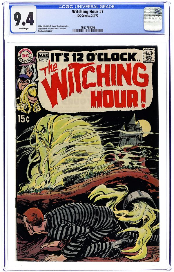 5-page framing sequence with art by Alex Toth. Stories: "The Big Break!"; "The Captive!"; "Look Homeward, Angelo!"; and "Trick or Treat" (art by Michael Kaluta; 2 pages). One-page text story, "Who Believes Ouija?" Neal Adams cover. 36 Pages, Full Color. Cover price $0.15.