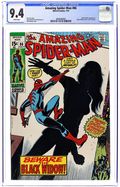 First appearance of the Black Widow's classic black costume in "Beware the Black Widow!" Guest-starring the Black Widow. Script by Stan Lee. Art by John Romita (layouts) and Jim Mooney (finishes). Cover by John Romita. Natasha Romanoff is ready to get back in the superhero game! But there are two things she must do first. One...design a new costume; and two...learn the secrets of the wondrous wall-crawler! So to that end the widow lays a trap for the web-slinger! Will the Amazing Spider-Man get caught in the web of the beautiful Black Widow? Retelling of the Black Widow's origin. Cameo appearances by Captain Stacy, Gwen Stacy, Harry Osborn, Aunt May, Anna Watson, and J. Jonah Jameson. Flashback cameos by Iron Man, Hawkeye, and the Red Guardian. (Notes: The Black Widow appears next in Amazing Adventures (1970 2nd series) #1. Spider-Man and the Black Widow meet again in Daredevil (1st series) 103. This issue was reprinted in Marvel Tales #67.) 36 pages. Cover price $0.15.