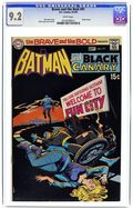 Cover by Neal Adams. 'A Cold Corpse for the Collector,' script by Bob Haney, art by Nick Cardy; While Batman is on the trail of the elusive crime lord known as the Collector, Black Canary has come to Earth-One from Earth-Two, and has sought out the Earth-One counterpart of her husband, Larry Lance; Warned by Batman that the Larry Lance of Earth-One is not as good-hearted as her late husband of Earth-Two, Black Canary pursues a relationship with Larry; The two heroes get caught up in the Collector's scheme to see Batman killed; In the final battle, Larry is revealed to be the Collector; In a struggle with Batman, Larry is stabbed by his own knife and dies; Afterwards, Batman encourages Black Canary to make a life for herself on Earth-One, and that she has Batman as a friend and ally. The Also features a one-page text article by Marv Wolfman titled '"The Greatest Heroes of Them All," the fifth in a series recounting the heroes who previously appeared in Brave and Bold. This article covers issues 79-86 (the Neal Adams issues). 36 Pages, Full Color. Cover price $0.15.