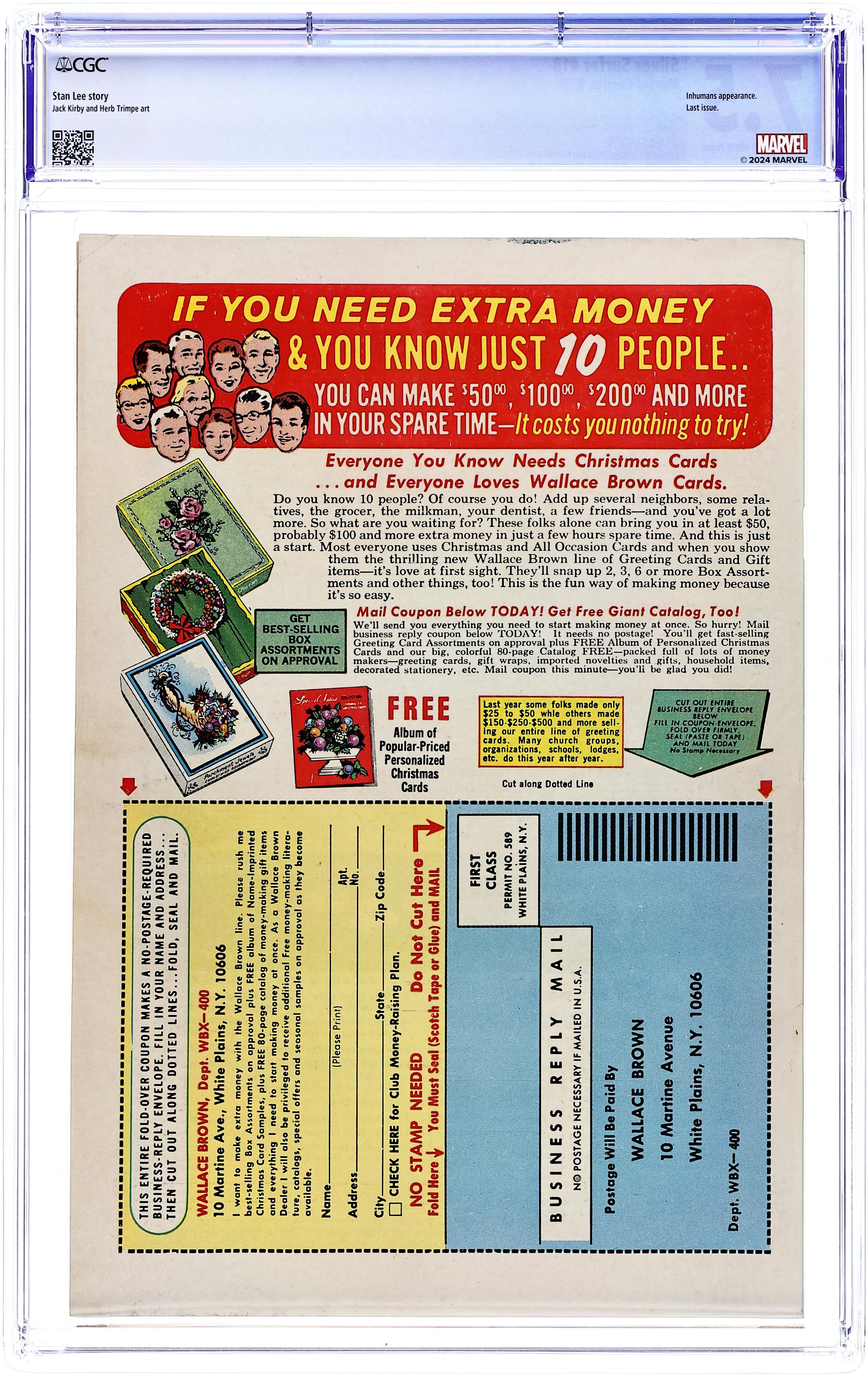 Cover pencils by John Buscema, inks by John Verpoorten. "Friend Against Friend!", script and pencils by Jack Kirby, inks by Chic Stone; Black Bolt and the Inhumans tackle Ben and Johnny at the Baxter Building, but suspects Maximus may be behind the missile attack and dispatches Triton to check up on him; Triton discovers the missile silo and abducts Maximus to return to the Great Refuge for judgment as well as informing Black Bolt who ceases hostilities as Reed Richards arrives and departs the Baxter Building the way they arrived via Lockjaw; Guest starring the Thing and the Human Torch of the Fantastic Four. "The Young Warriors!", script by Gary Friedrich, pencils by John Buscema, inks by John Verpoorten; A group of young Puerto Ricans try to take over a building to use it to help their community. 36 pgs, full color. $0.15. Cover price $0.15.