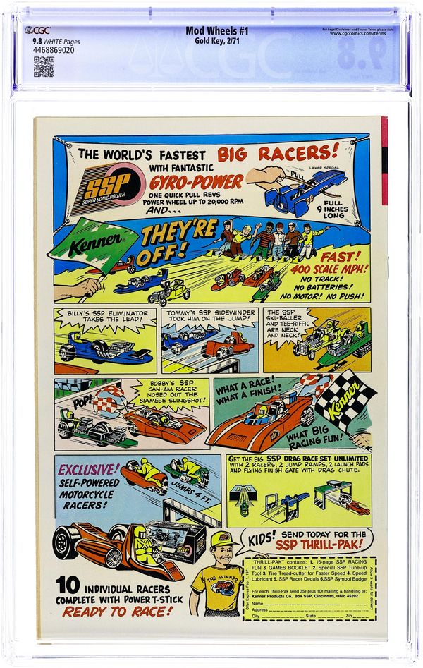 First issue of the adventures of Wheels Williams, Lump Logan, Li'l Bit Bannon, and 'Scot McCall, a road-racing group that encounters mystery and adventure in between races. In the first issue, they were also a rock'n'roll group, the Modniks. Later issues did not feature the musical group very much. The issue featured "Grooving with Gavilan" and "Hit and Run." # on cover 10264-102 February. #1 2/71 15c Cover price $0.15.