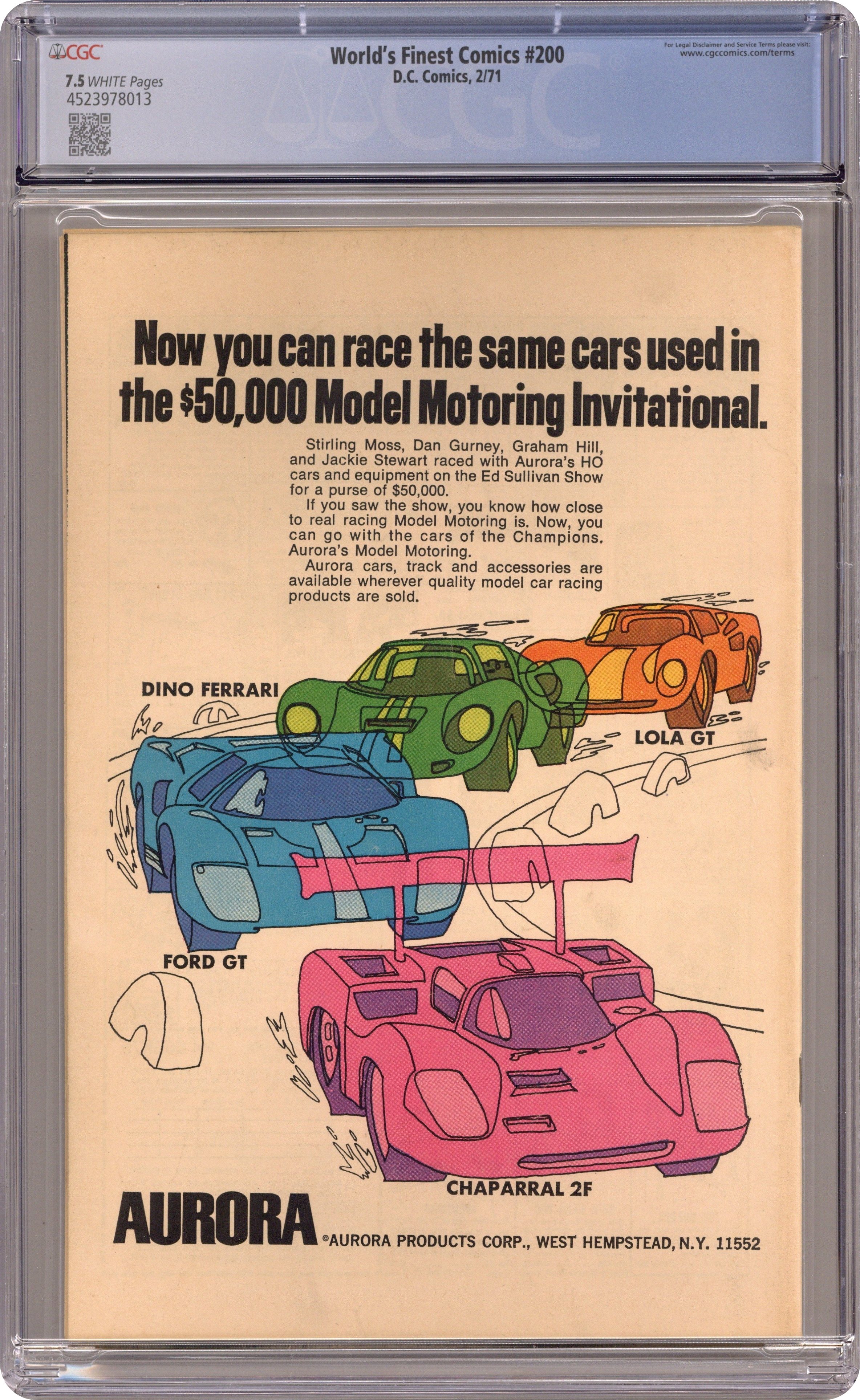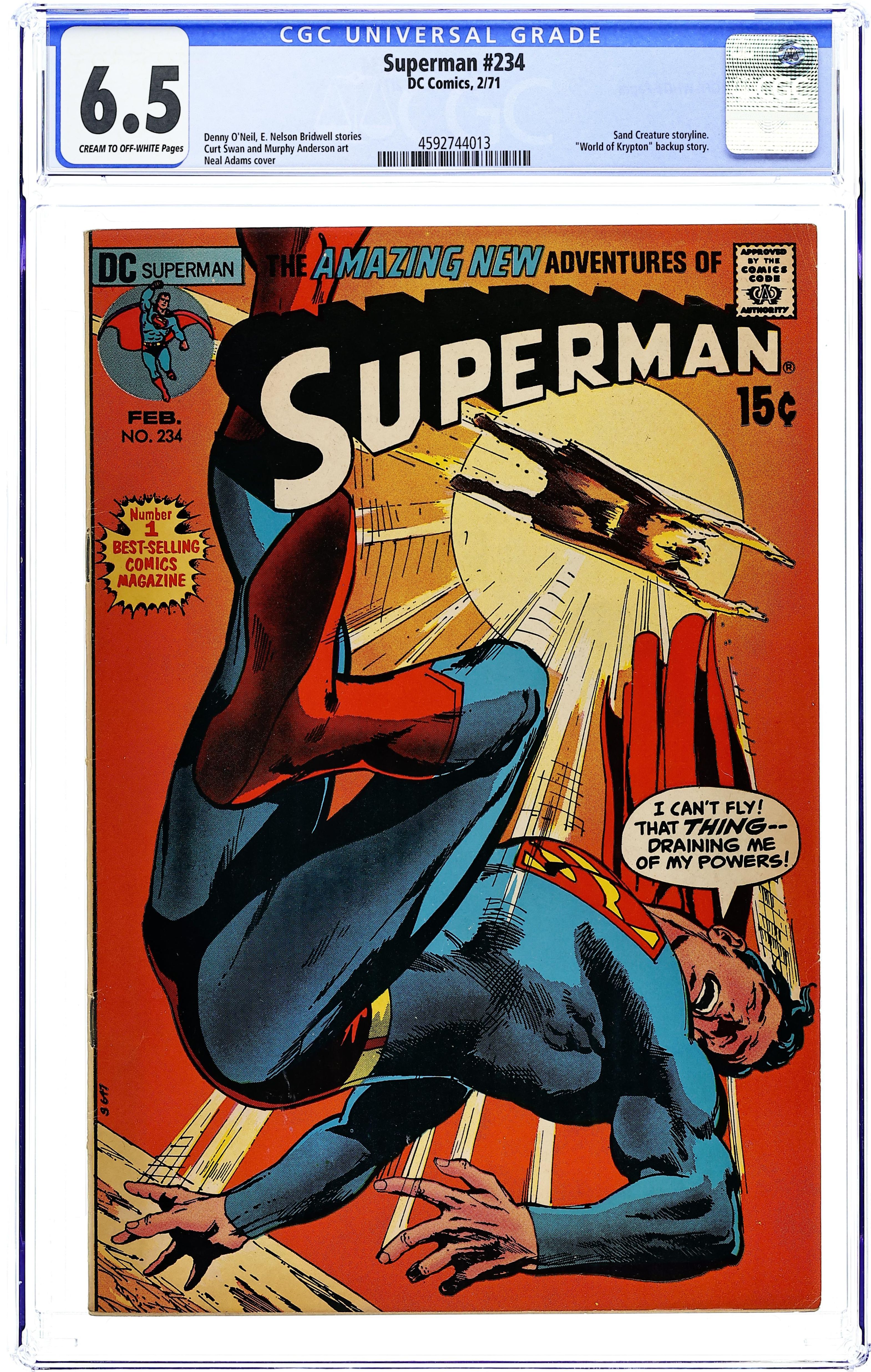 Cover art by Neal Adams. Prisoners of the Immortal World! starring Superman and Robin, script by Mike Friedrich, pencils by Dick Dillin, inks by Joe Giella; Aliens teleport Superman, Robin and two brothers from Hudson University to their alien world to use Superman as a living battery to power their immortality machine. Meteor Showers text article. 1971 Superman Calendar (will also work for the years 2010, 2021, 2027, 2038, 2049, and others). 36 Pages, Full Color. Cover price $0.15.