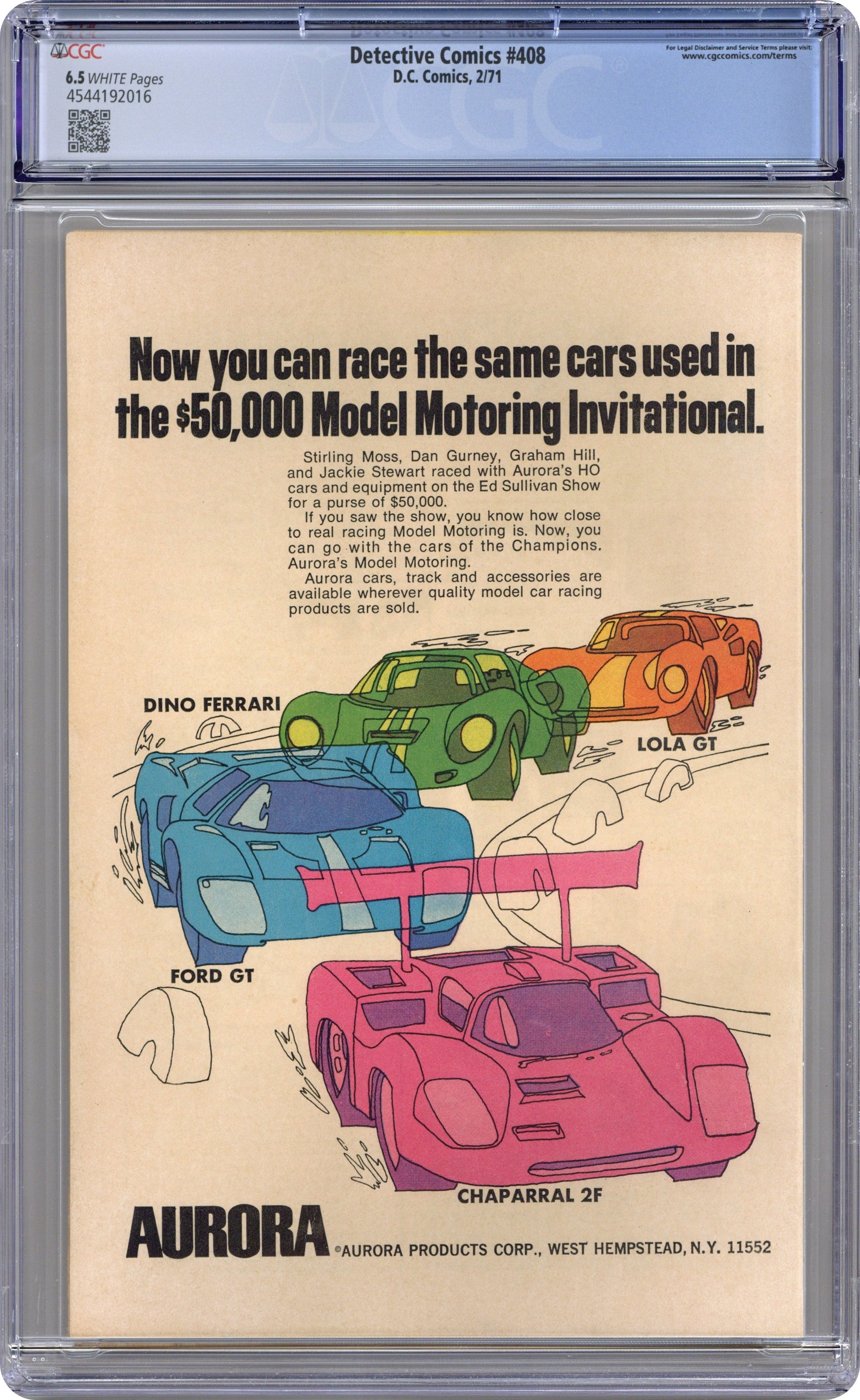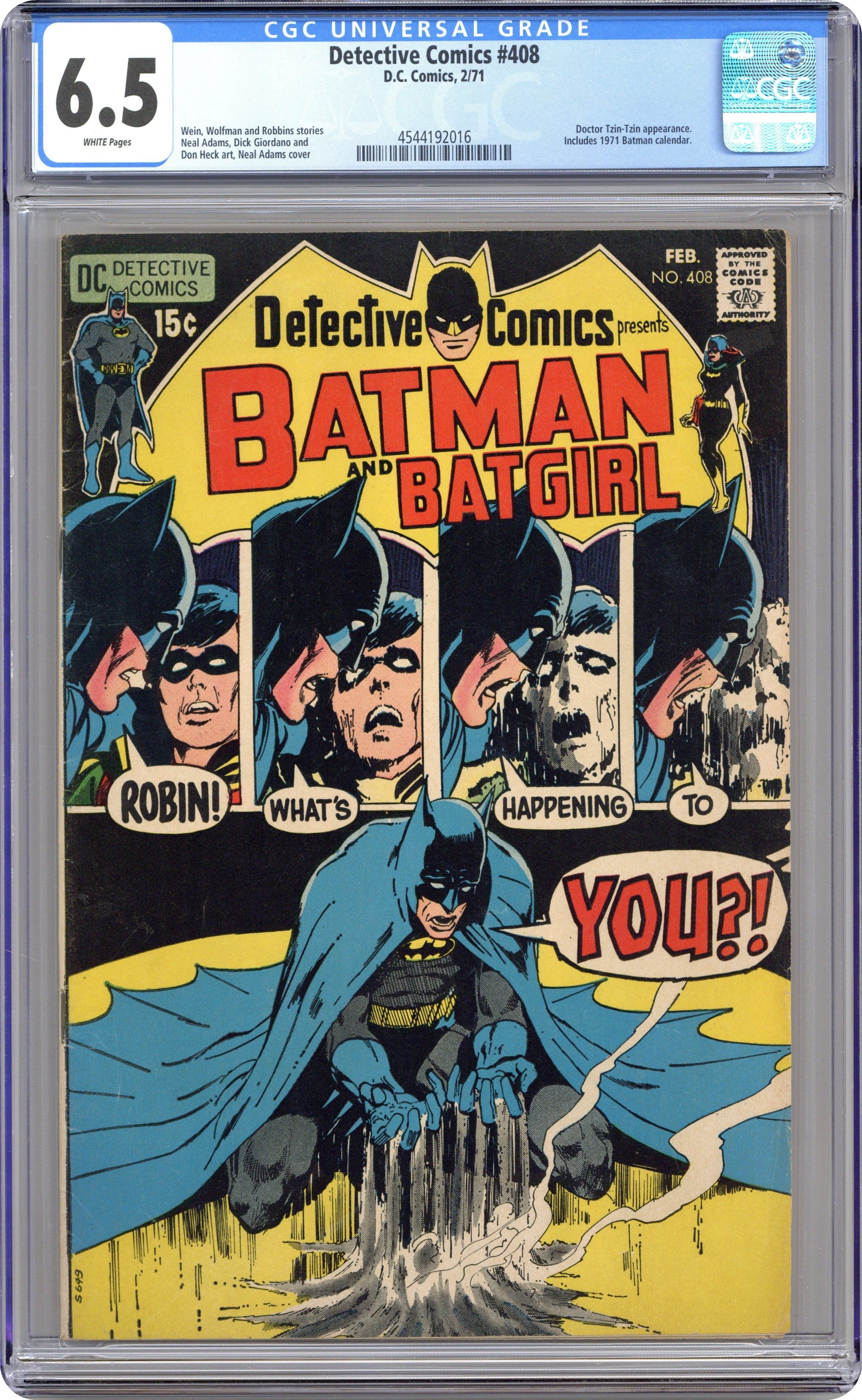 Cover by Neal Adams. "The House That Haunted Batman!," script by Len Wein and Marv Wolfman, pencils by Neal Adams, inks by Dick Giordano; Robin goes missing and Batman finds a house that wasn't there yesterday; Strange things happen around Batman until he meets the owner of the house; Cameos by Superman, Flash, Green Lantern, Green Arrow, and Hawkman. "Batgirl vs. the Phantom Bullfighter!," script by Frank Robbins, pencils by Don Heck, inks by Dick Giordano; In order to aquire the manuscript "Of Fighting Bulls and Men" for the Gotham Library, Barbara Gordon must travel to Madrid, Spain. There she is the guest of Don Alvarado, owner of the manuscript, who takes her to see its subject: a bull fighter named El Grandos. Science in Crime Detection article. 1971 Batman calendar (also works for the years 2010, 2021, 2027, 2038, 2049, and others). Letter to the editor from comics writer Martin Pasko. 36 pgs., full color. $0.15. Cover price $0.15.