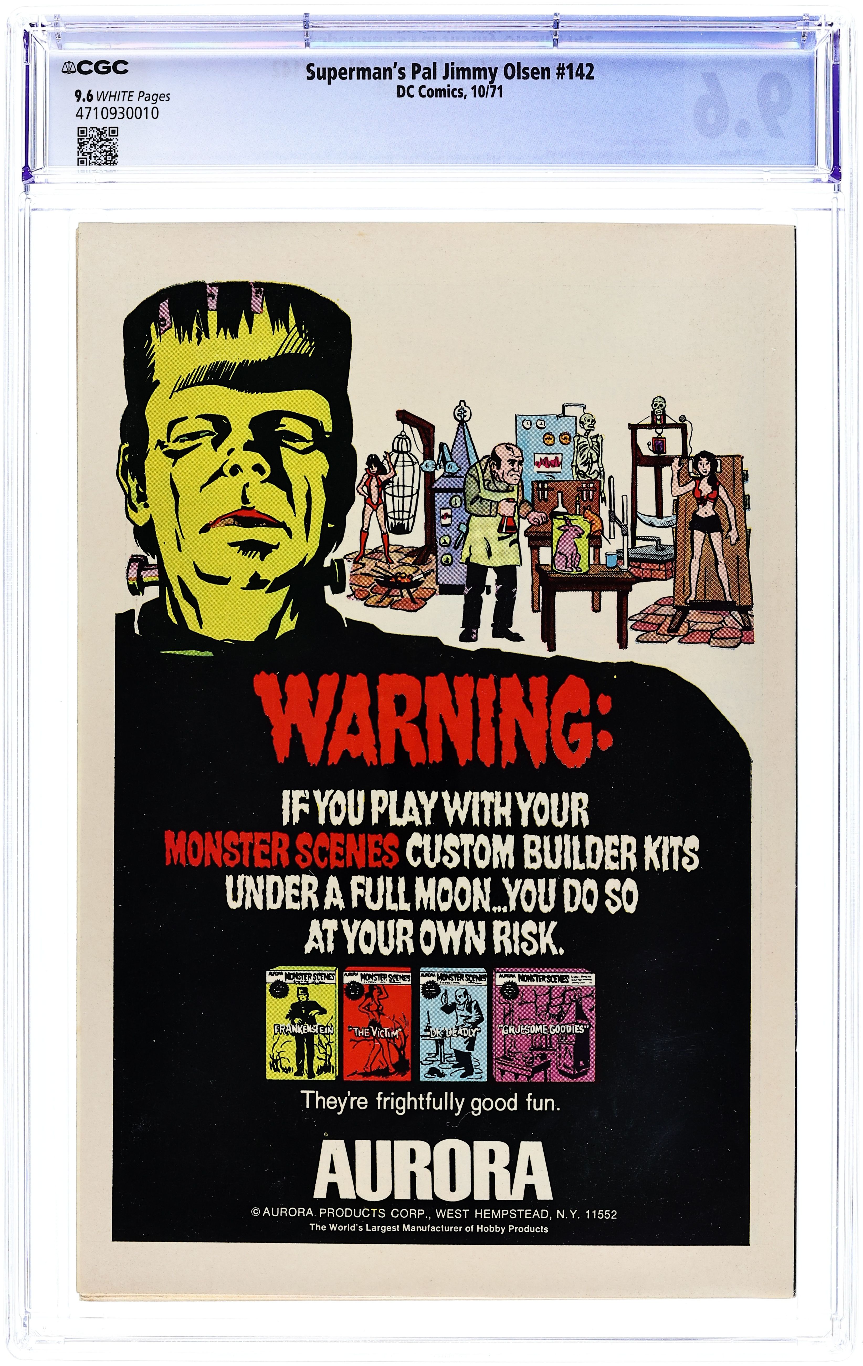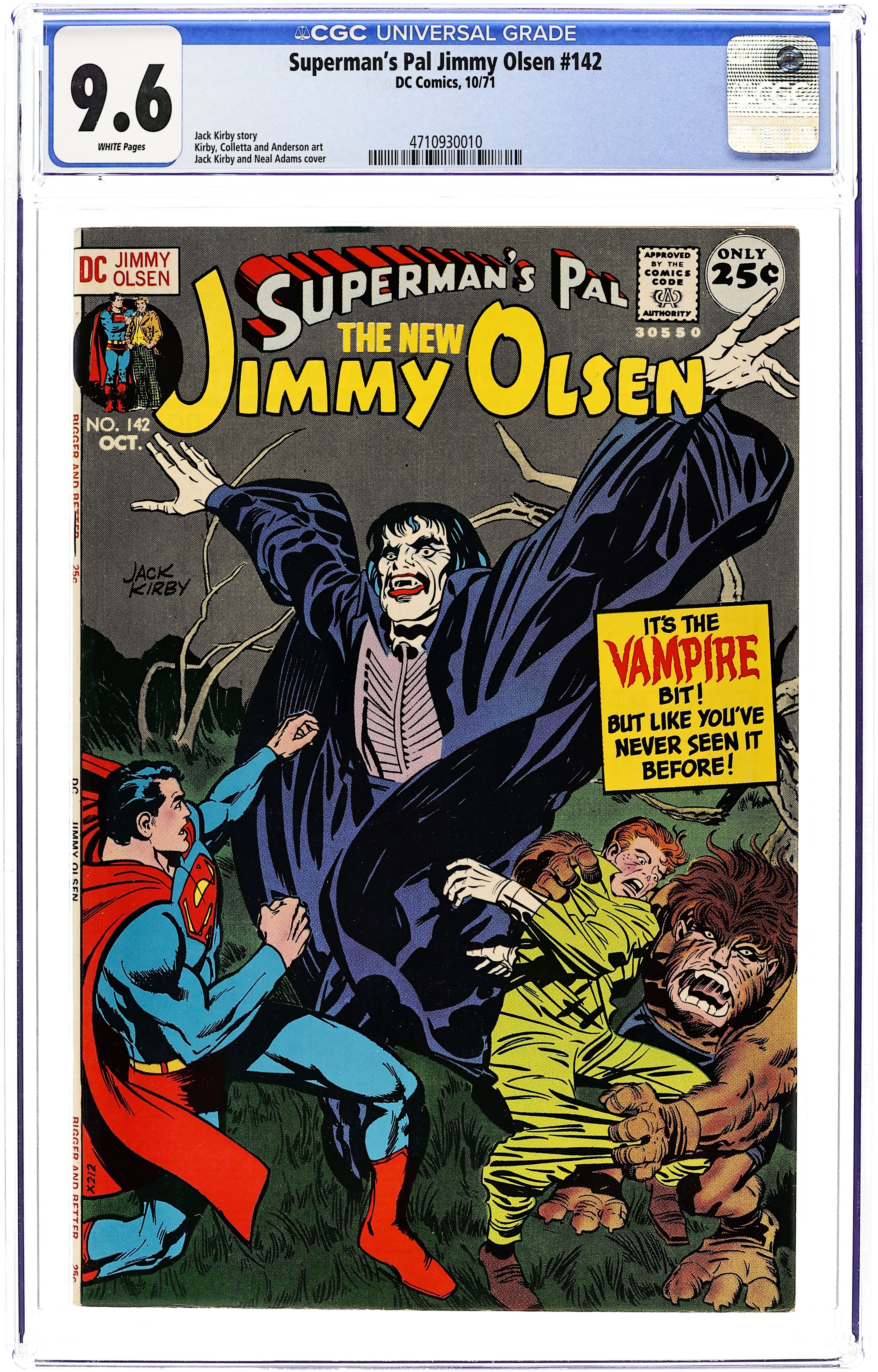 Cover pencils by Jack Kirby, inks by Neal Adams and Mike Royer. The Man from Transilvane!, script by Jack Kirby, pencils by Jack Kirby and Murphy Anderson (Superman and Jimmy Olsen heads), inks by Vince Colletta; Superman and Jimmy face a seeming vampire, while the Newsboy Legion pursues a lead to finding the killer of the original Jim Harper. Hairie Secrets Revealed!!!--Strange Stories of the D.N.A. Project, and pencils by Jack Kirby, inks by Vince Colletta. Last Mile Alley, script by Jack Kirby and Joe Simon, pencils by Jack Kirby, inks by Joe Simon; The Newsboys decide to peddle their papers in some of the worst sections of Suicide Slum, leading to three of them being captured by crooks working for the Big Boss. Letter from comics writer Bob Rozakis. 52 Pages, Full Color. Cover price $0.25.