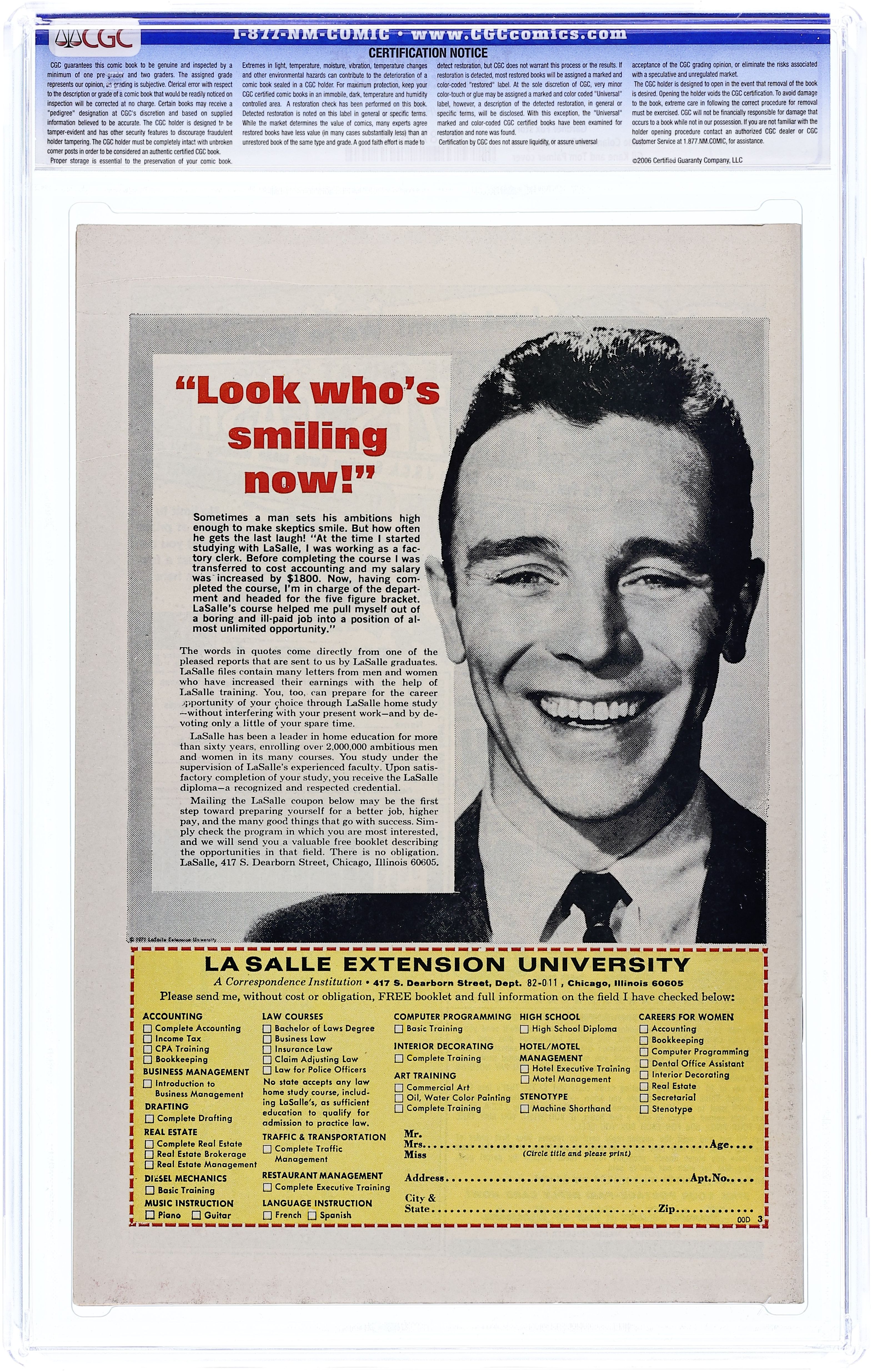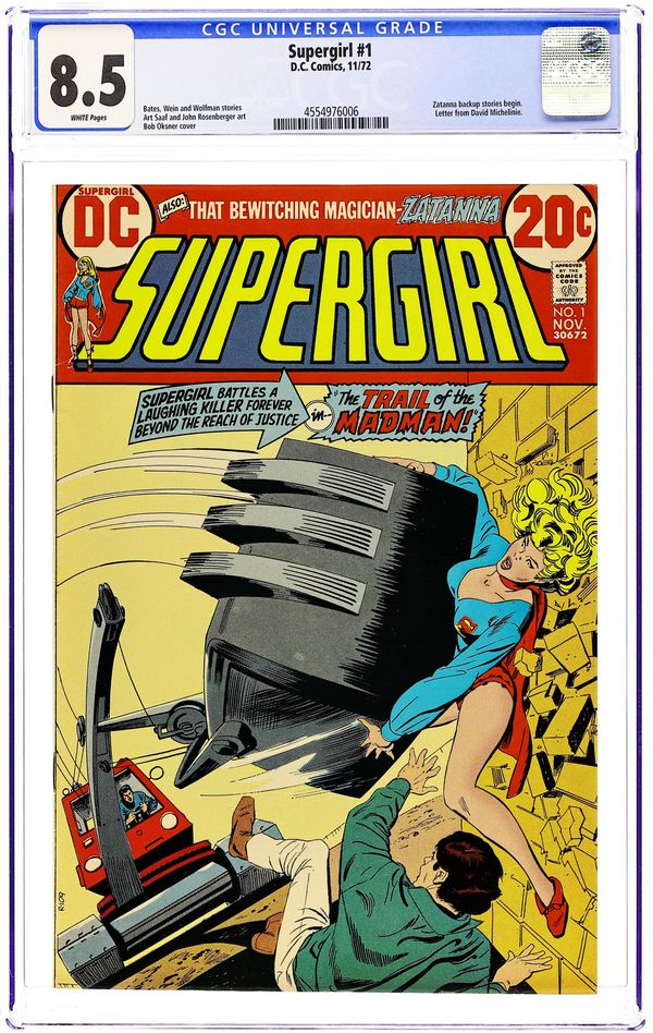 1st solo title. Cover art by Bob Oksner. Trail of the Madman!, script by Cary Bates, pencils by Art Saaf, inks by Vince Colletta; Linda quits her job at KSF-TV, and goes back to college at Vandyre University to study drama. Super Fashions From Fans!; Fans provide fashions and hair designs for Supergirl. Castle in the Clouds, script by Len Wein and Marv Wolfman, pencils by John Rosenberger, inks by Dick Giordano; Jeff gets caught in Zatanna's trance, and gets sent back to King Arthur's Court. 36 pgs. $0.20. Cover price $0.20.