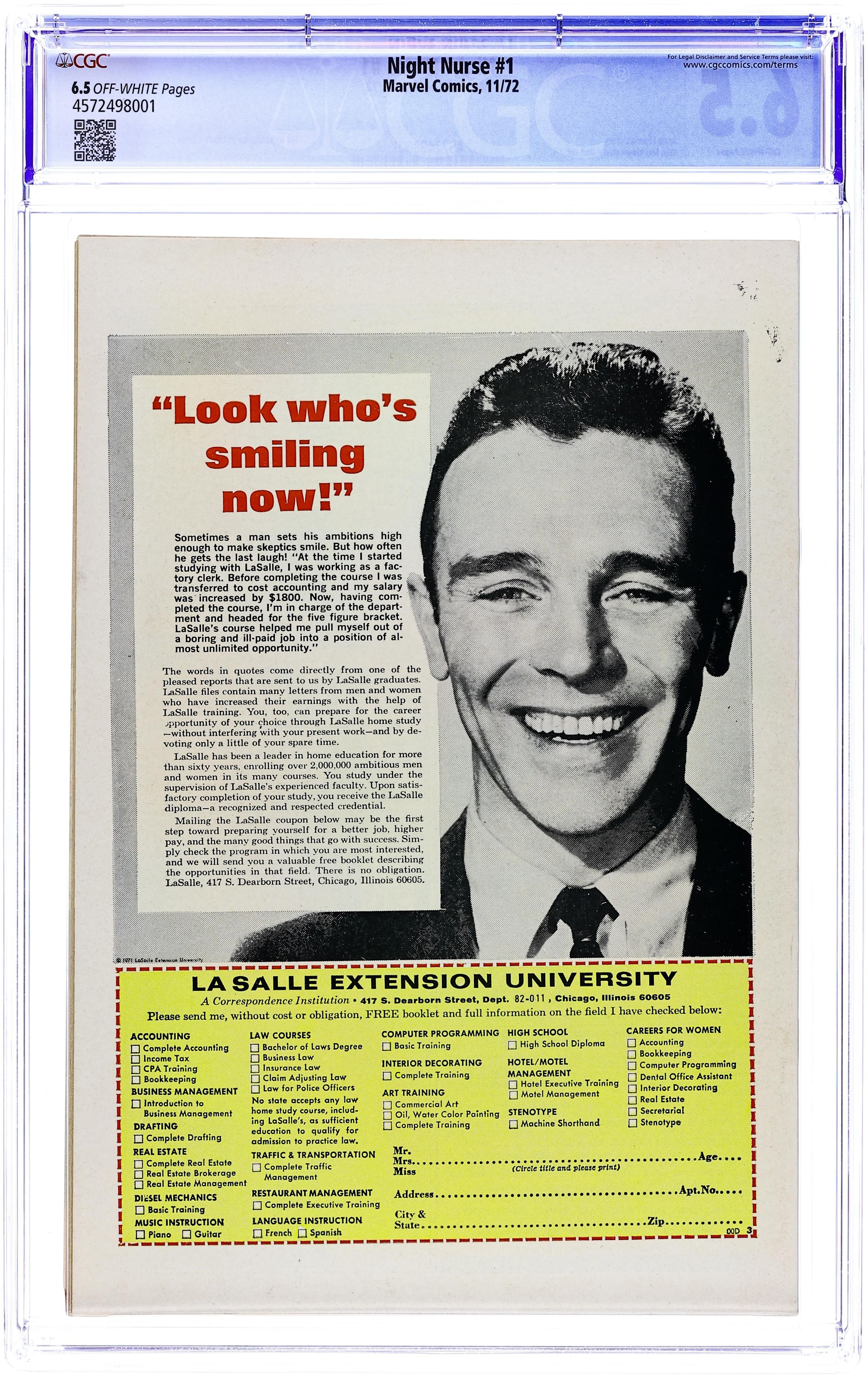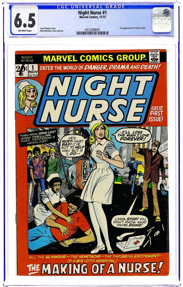 Cover art by Win Mortimer. "The Making of a Nurse!", script by Jean Thomas, art by Win Mortimer; Linda Carter, Georgia Jenkins, and Christine Palmer all study to be nurses; Marshall Michaels asks Linda Carter to marry him but insists that she give up on being a nurse; When all of the city's power goes out Ben Jenkins (Georgia's brother) and Rocky try to hold the hospital's generator hostage; When Ben listens to his sister and tries to stop Rocky he is shot; Linda turns down Marshall's marriage proposal to become a nurse. Ad for The Cat comic book series. 36 pgs., full color. Cover price $0.20.