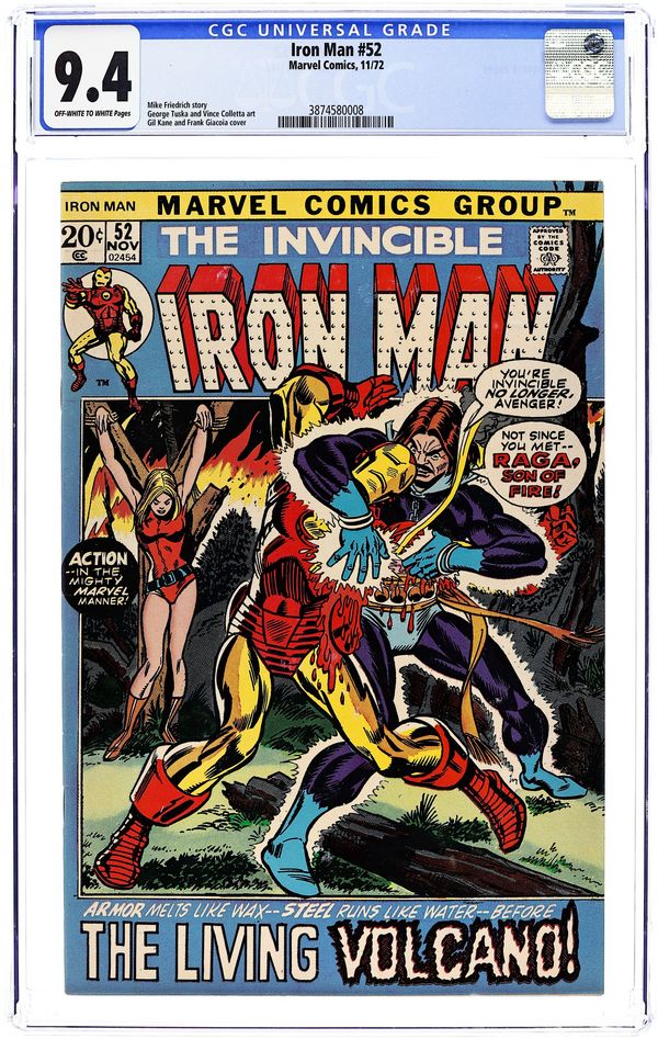 "Raga: Son of Fire!" Story by Mike Friedrich. Art by George Tuska and Vince Colletta. Cover by Gil Kane. Tony Stark decides to get away from New York for a while, so he takes a vacation to California. It's a very relaxing trip until a new villain, Raga, the Son of Fire, starts a forest fire in the Santa Monica Mountains! Shell-Head appears to be on the way to victory until he becomes trapped in a lava flow! (Note: The letters page includes a letter from comics editor David McDonnell. The letters page also includes a letter from Robert Kuntz, one of the early contributors and creators of role-playing games including Dungeons and Dragons.) 32 pages Cover price $0.20.