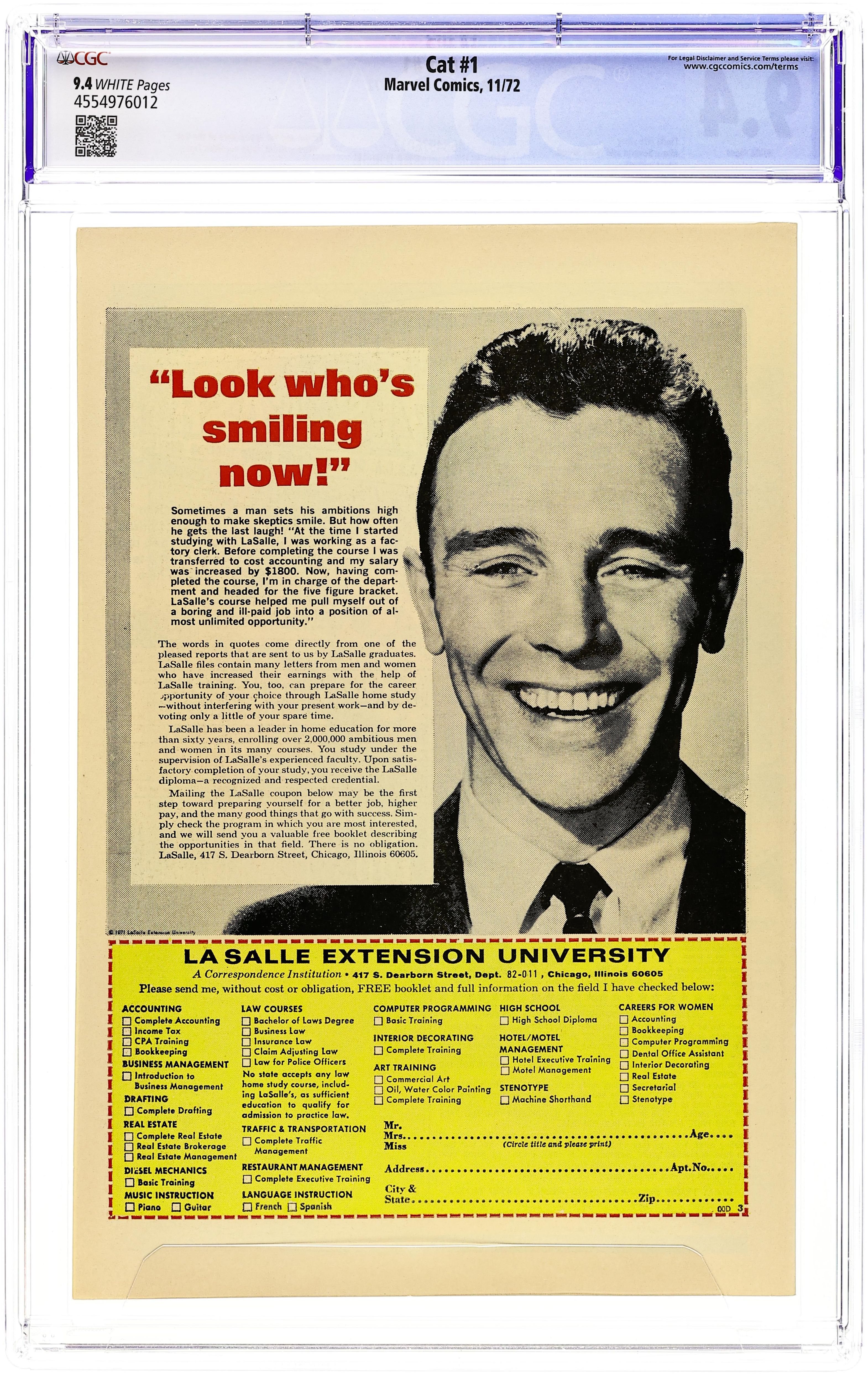1st appearance and origin of Greer Grant Nelson (later Tigra). Beware the Claws of...the Cat! - Written by Linda Fite (script and co-plot) and Roy Thomas (co-plot). Art and Cover by Marie Severin and Wally Wood. She stalks by night! Introducing Marvel's newest action bombshell! How did a beautiful girl gain the uncanny powers of a killer beast? Don't miss this amazing origin issue! 32 pages, full color. Cover price $0.20.