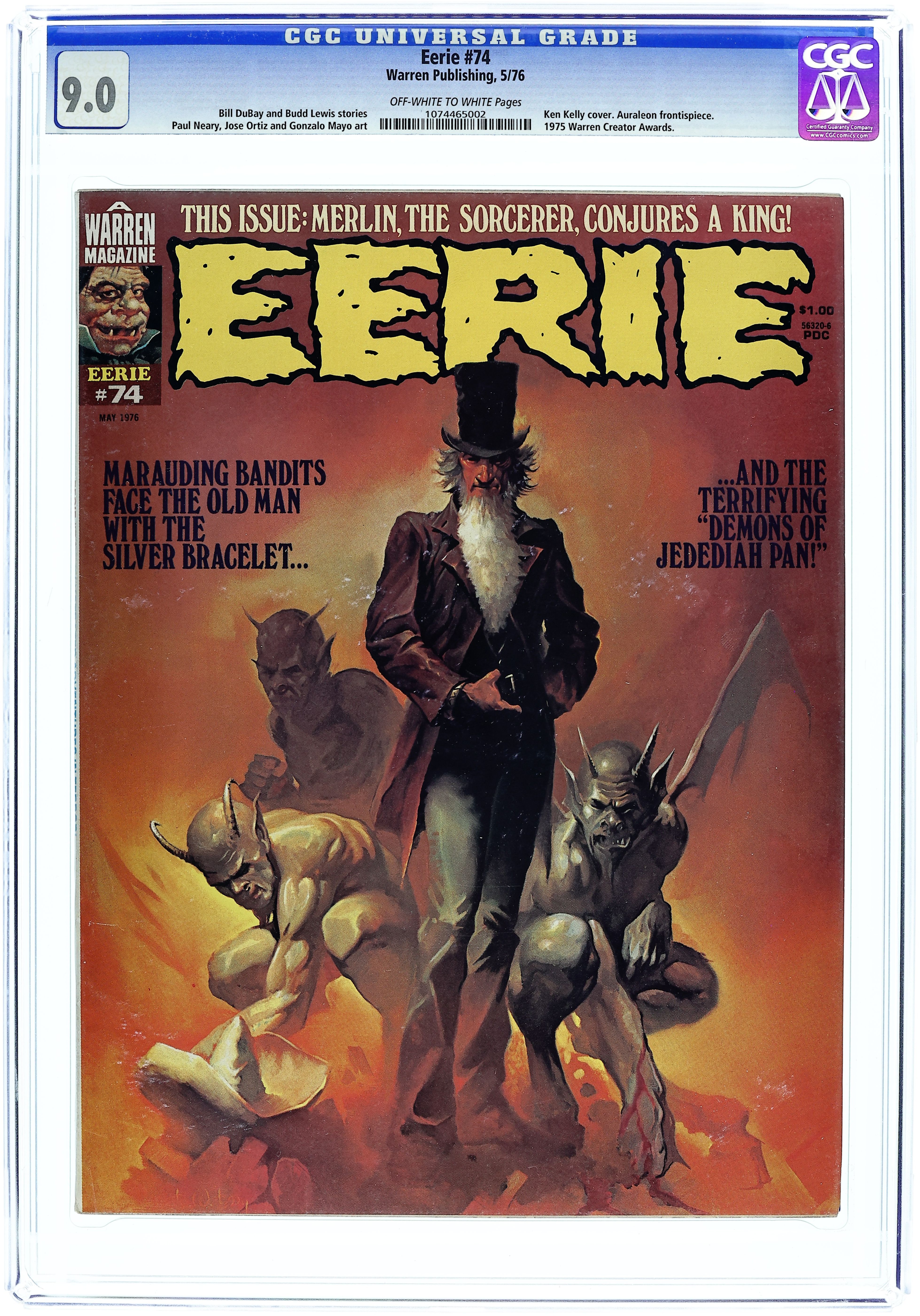 Stories in this issue include: The Demons of Jedediah Pan by Bill Dubay and Jose Ortiz; Father Creator by Bill DuBay and Paul Neary; Merlin: A Secret King by Budd Lewis and Gonzalo Mayo; and The Expedition by Budd Lewis and Leopold Sanchez. Includes the 1975 Warren Awards by Bill DuBay. Cover art by Ken Kelly. Cover price $1.00.