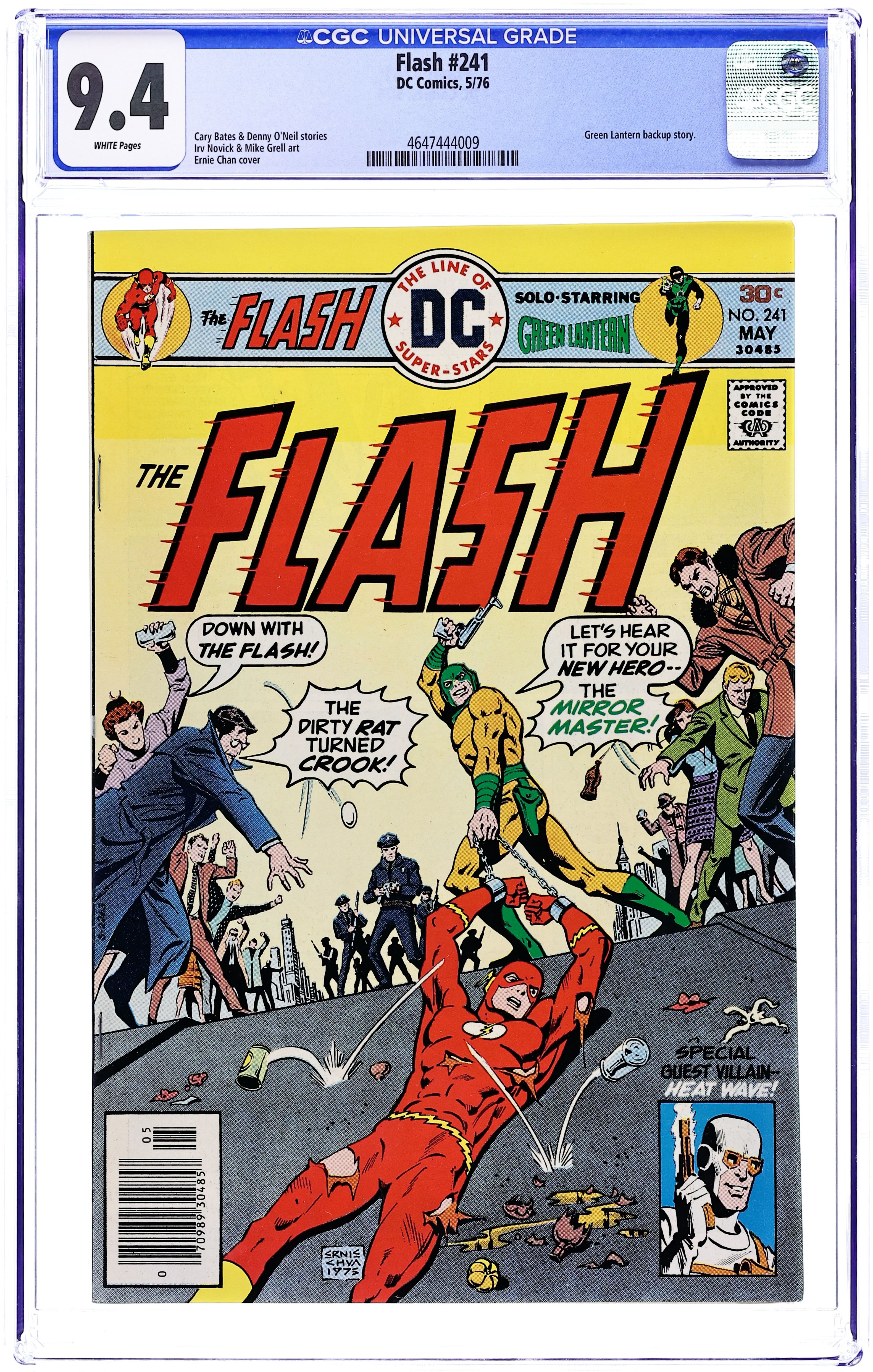 Cover art by Ernie Chan [as Ernie Chua]. Twinkieless Gotham City Hostess Twinkies starring Batman and Penguin, pencils by Curt Swan, inks by Vince Colletta. Steal, Flash, Steal!, script by Cary Bates, pencils by Irv Novick, inks by Frank McLaughlin; Mirror Master has used mesmerizing mirrors to make Flash believe he is a crook; The Flash commits several robberies before an assist from Dexter Myles, masquerading as Heat Wave, shows the Flash he is not a crook and allows him to capture Mirror Master. To Kill a Star!, script by Denny O'Neil, pencils by Mike Grell, inks by Tex Blaisdell; Green Lantern is chasing the Ravagers, who attempt to kill the sun of Jotham, but he uses the nuclear reactors of a space ship to kick up the fusion activity of the sun. Ad for pajamas and other DC super-hero merchandise. Batman and More Secret Origins of Super-Villains tabloid ad. 36 Pages, Full Color. Cover price $0.30.