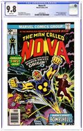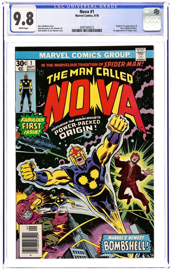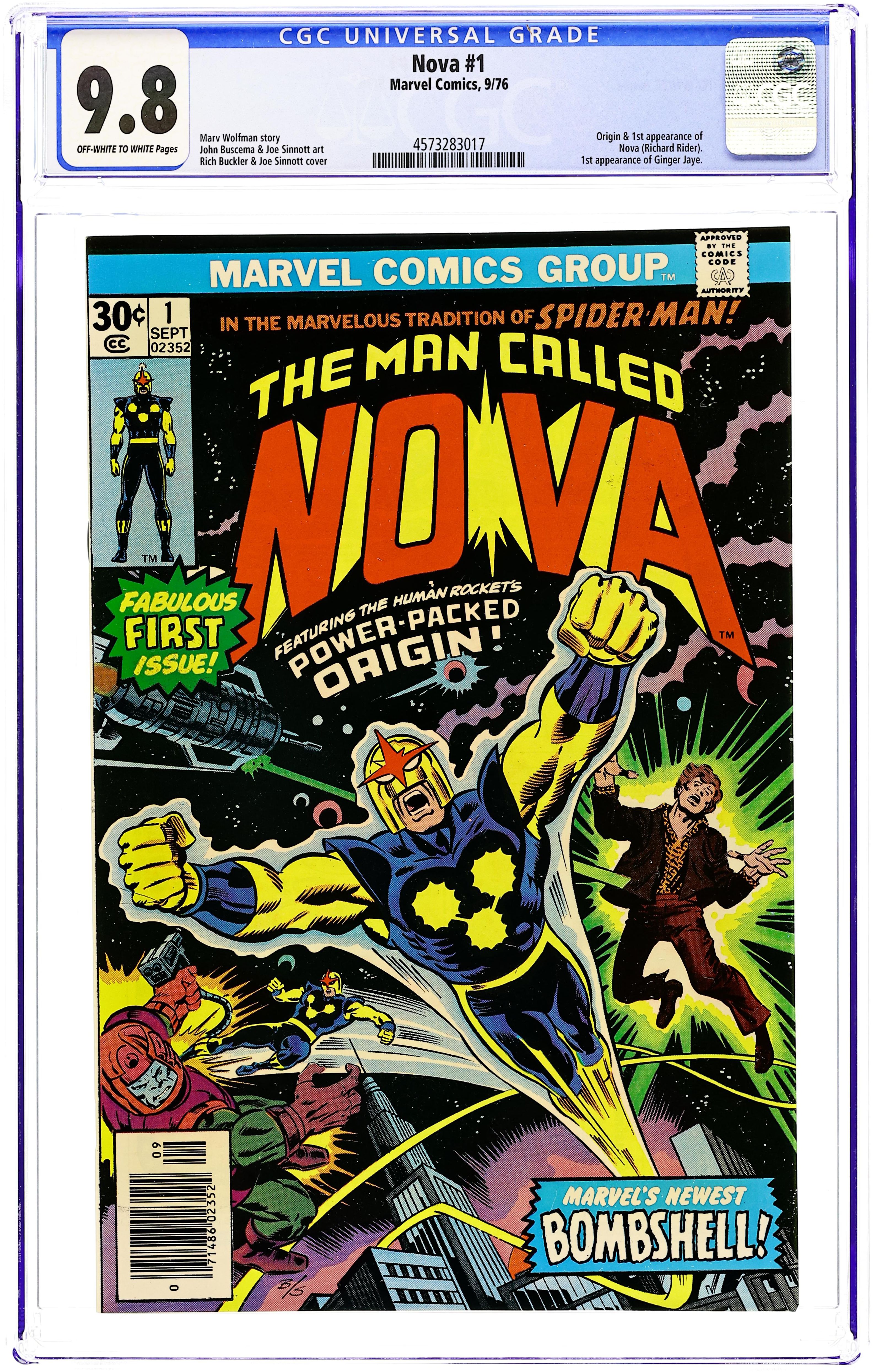 Written by Marv Wolfman. Pencils by John Buscema. Inks Joe Sinnott. When a dying alien passes on his super-powers to Earth teenager Richard Rider, Rider becomes the man called Nova, the human rocket! In the marvelous tradition of Spider-man, Nova must now stop the murderous alien known as Zorr, or Earth is doomed! Note: First appearance of Nova. 36 pages, full color. Cover price $0.30.
