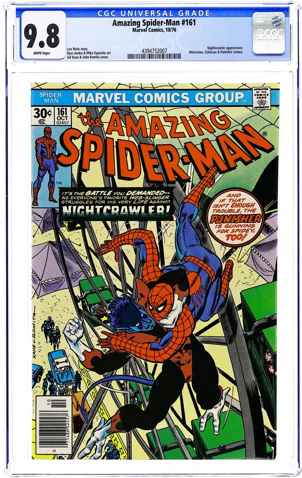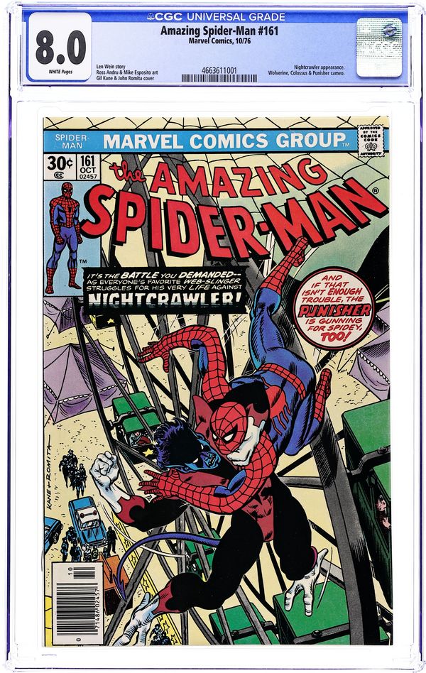 "And the Nightcrawler Came Prowling, Prowling" Part 1 of 2. Guest-starring Nightcrawler. Script by Len Wein. Art by Ross Andru (breakdowns), Mike Esposito (finishes), and Dave Hunt (backgrounds). Cover by Gil Kane and John Romita. Someone is going around New York City impersonating the Punisher! The Amazing Spider-Man thinks the sniper might be Nightcrawler! While the new X-Man believes the shooter could be the web-slinger! First at Coney Island and later at the Roosevelt Island Tramway, Nightcrawler and the wall-crawler clash amid their mutual confusion! But the situation becomes crystal clear once the heroes find themselves in the crosshairs...of the real Punisher! The bullets fly next issue! Cameo appearances by the Punisher, Wolverine, Colossus, Mary Jane Watson, Harry Osborn, Liz Allan, Joe Robertson, and J. Jonah Jameson. (Notes: This issue features the first meeting between Spider-Man and Nightcrawler. The web-slinger meets all of the new X-Men for the first time in Marvel Team-Up Annual 1. This story was reprinted in Marvel Tales 214.) 36 pages. Cover price $0.30.