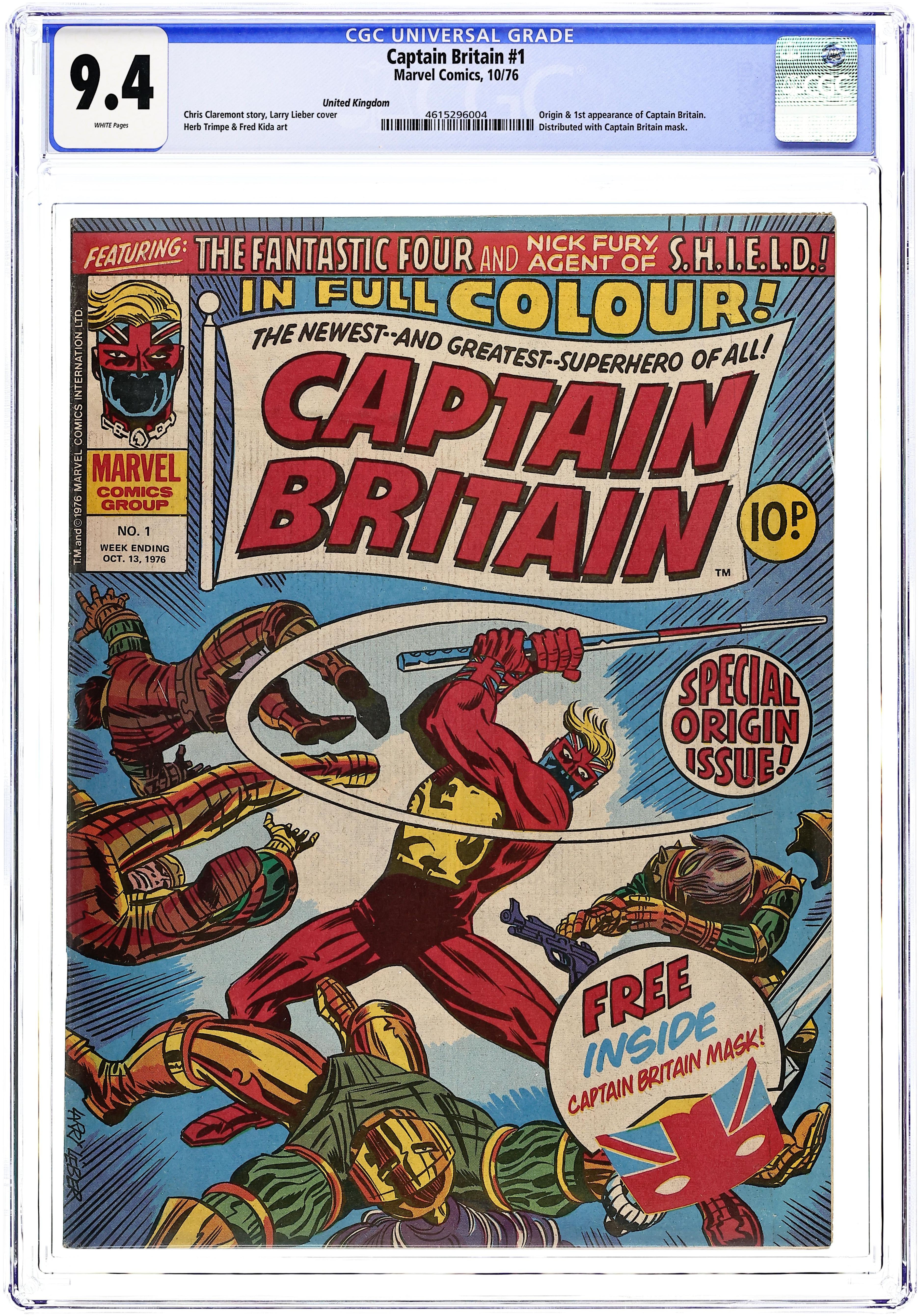 Copy includes Captain Britain mask. Magazine size weekly British edition comic published weekly by Marvel Comics International. First issue features origin of the Mask. Fantastic Four #110 reprint in b&w. Nick Fury reprint. Nick Fury Pinup Page/Captain Britain Pinup page; 32 pages; cover and 13 interior pages in full color, rest black and white.