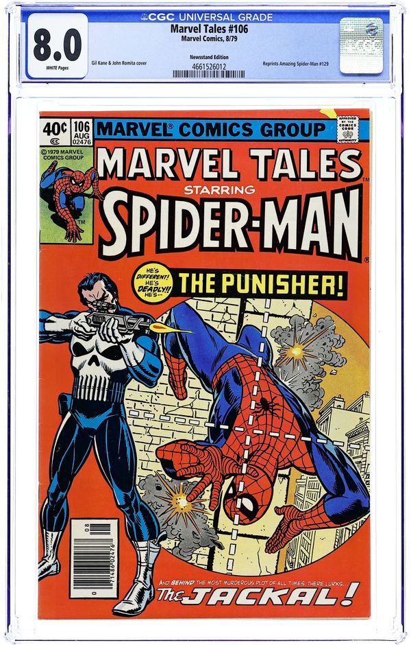 Newsstand Edition. Reprints Amazing Spider-Man 129. First appearances of the Punisher and the Jackal in "The Punisher Strikes Twice." Script by Gerry Conway, pencils by Ross Andru, inks by Frank Giacoia and Dave Hunt. Gil Kane cover. Cover price $0.40.
