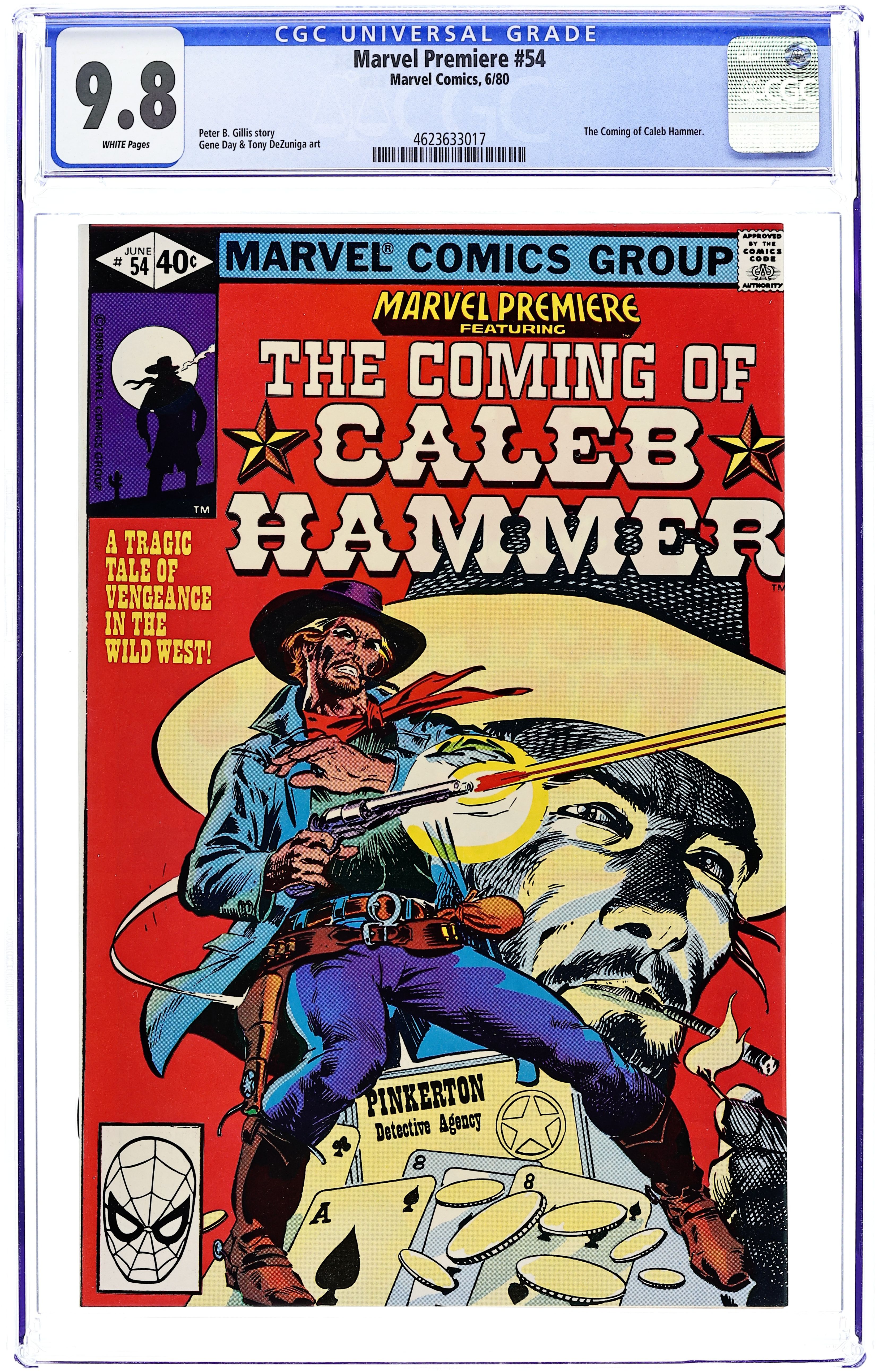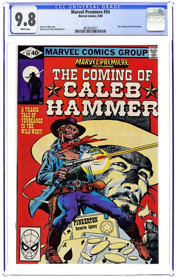 Cover pencils by Tony DeZuniga (?), Frank Miller (?), and Dave Cockrum (?), inks by Tony DeZuniga. "The Devil's Starry Anvil!", script by Peter Gillis, pencils by Gene Day, inks by Tony DeZuniga; The enigmatic Caleb Hammer, Bounty Hunter, Pinkerton agent, tragic hero, rides into the town of Manacle, Wyoming; Upon setting foot in the main bar, he is challenged to a gunfight by a young gunman; The town sheriff walks in and Caleb questions him about a pair of civil war legends turned murderous outlaws, known as Crawford and Lovelace; Another flashback tells off the time Caleb e pursued an outlaw called Billy Par. 36 pgs., full color. Cover price $0.40.