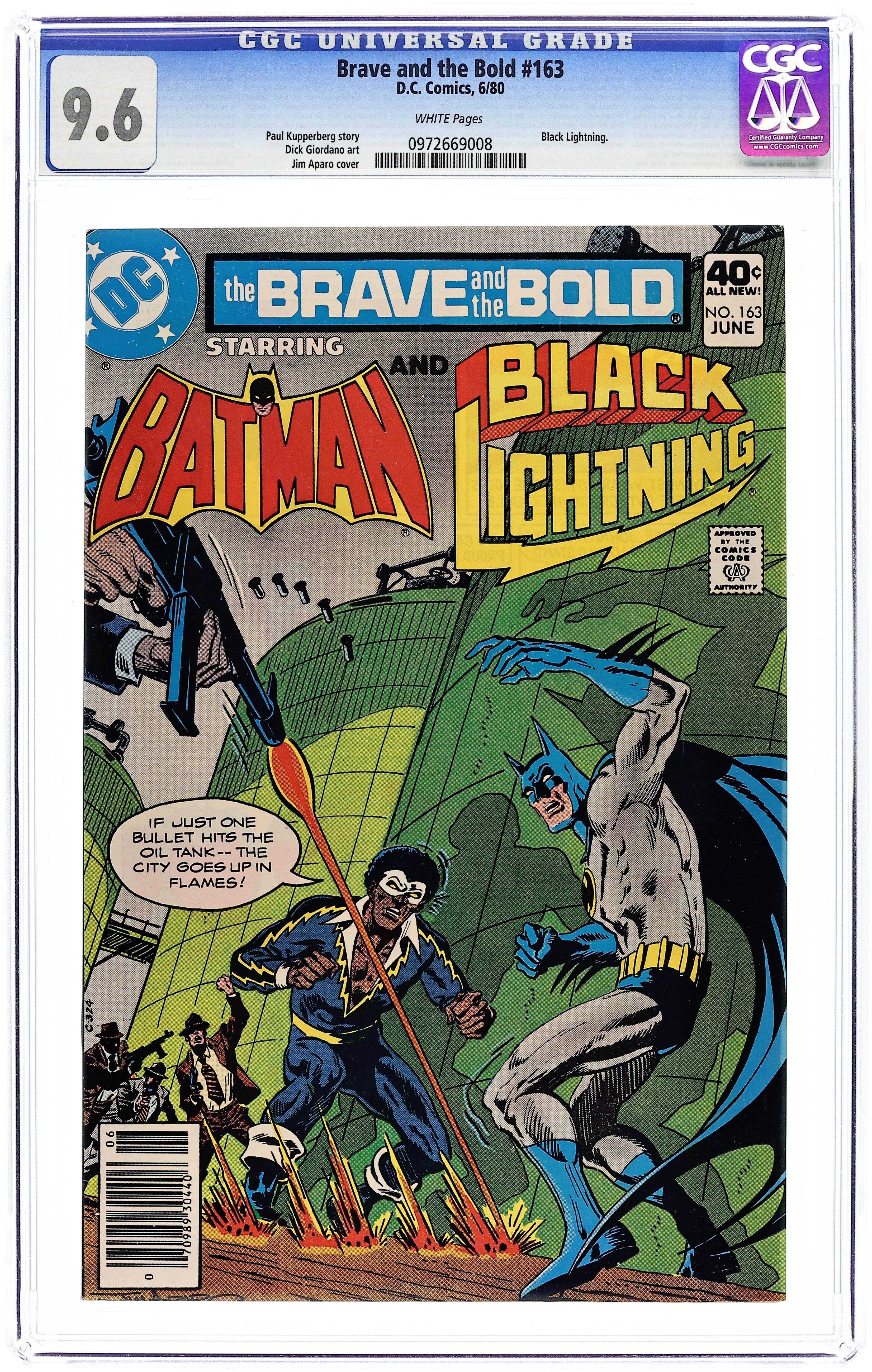Cover by Jim Aparo. "Oil, Oil... Nowhere!", script by Paul Kupperberg, art by Dick Giordano; Batman and Black Lightning team up to discover why oil tank trucks have been disappearing on the Gotham-Metropolis run. A Flash in the Dam ad for Hostess snack cakes featuring the Flash. Article by Bob Rozakis on periodicals "The Comic Reader," "The Comics Journal," "Mediascene," and "The Buyer's Guide." 36 Pages, Full Color. Cover price $0.40.