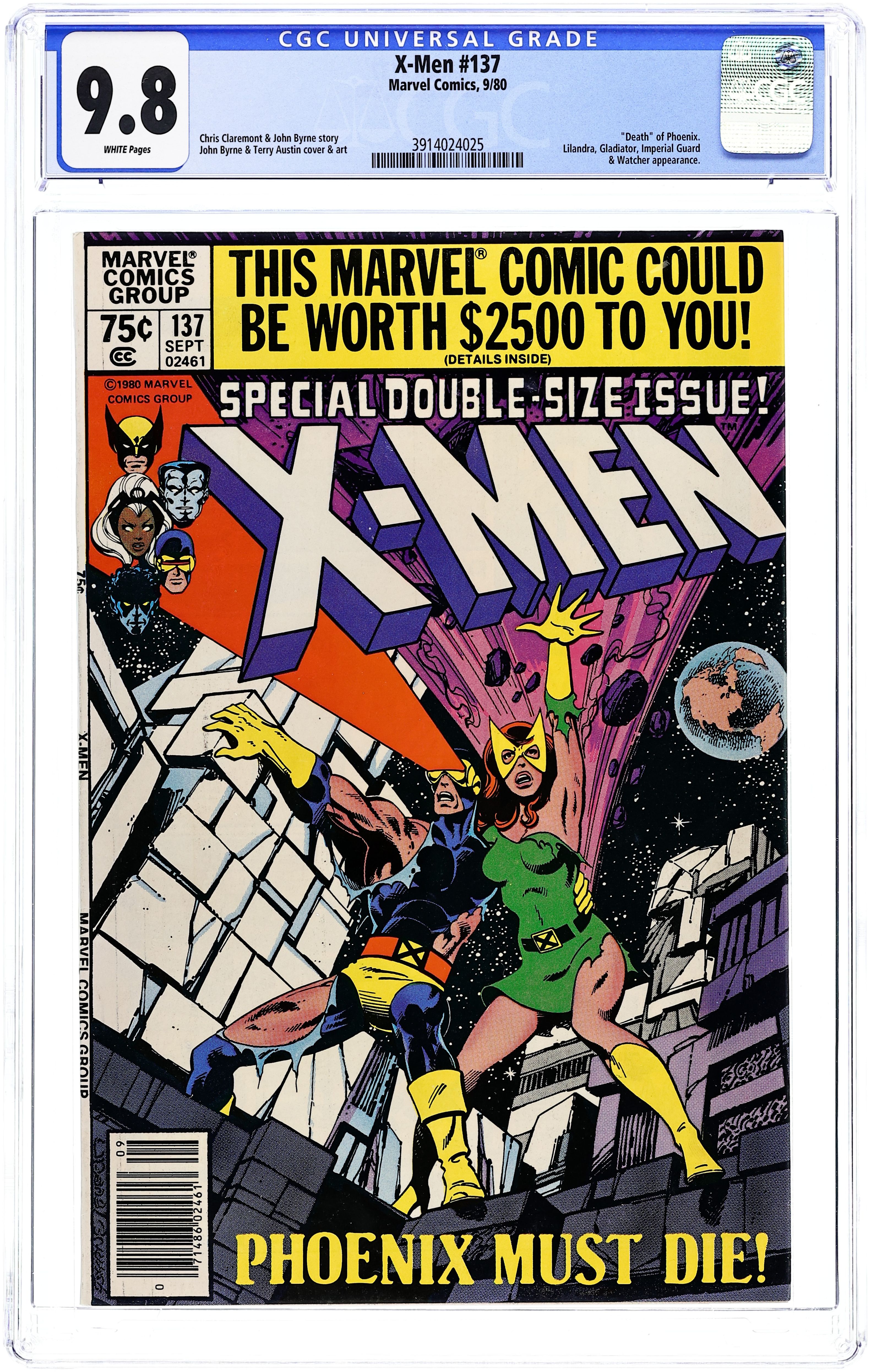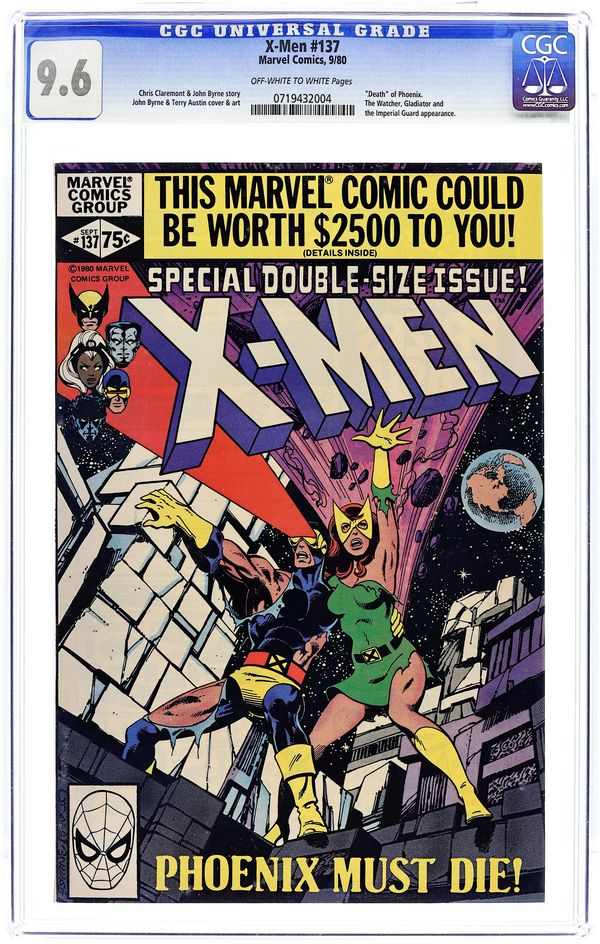 Newsstand Edition. The Dark Phoenix Saga: Part 9 of 9 - "The Fate of Phoenix!" Guest-starring the Watcher. Story by Chris Claremont and John Byrne. Art by John Byrne and Terry Austin. The persona of the Dark Phoenix has subsided, but for how long? The Shi'ar Empire doesn't plan to wait and find out. While as Dark Phoenix, Jean murdered untold billions, and the alien empire plans to see her pay for her crimes. Now, the X-Men must battle the Shi'ar Imperial Guard in a dual to decide the fate of Jean Grey. Don't miss the stunning conclusion to the greatest X-Men saga of all time!