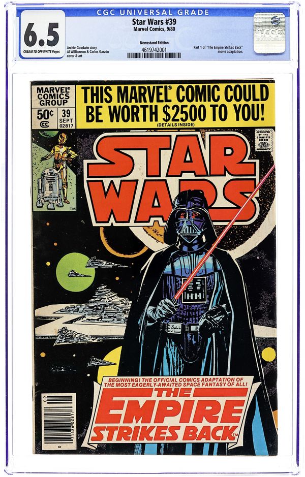 Newsstand Edition. The Empire Strikes Back: Part 1 of 6. "The Empire Strikes Back." Script by Archie Goodwin, art by Al Williamson and Carlos Garzon. Note: Part 1 of movie adaptation; based on the movie script; both Williamson and Garzon pencil and ink the art for this series. Cover by Williamson and Garzon. Cover price $0.50.