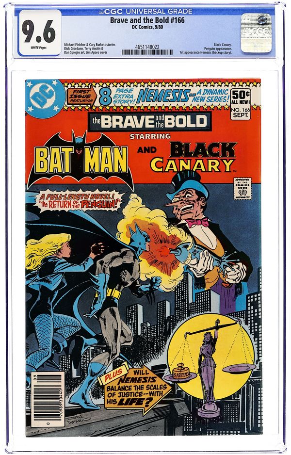Regular 50-cent cover price issues begin. Cover by Jim Aparo. "Requiem for 4 Canaries!", script by Michael Fleisher, pencils by Dick Giordano, inks by Terry Austin and Dick Giordano (some faces); The Penguin sets out to murder the four crooks whose testimony sent him to jail, and Batman and Black Canary seem unable to protect them. A Matter of Good Taste Hostess snack cakes ad featuring Batgirl. Back-up story: "Nemesis," script by Cary Burkett, art by Dan Spiegle; Thomas Tresser, as Nemesis, brings a ganglord to justice through his skills of impersonation by posing as the kingpins chief hitman. 36 Pages, Full Color. Cover price $0.50.