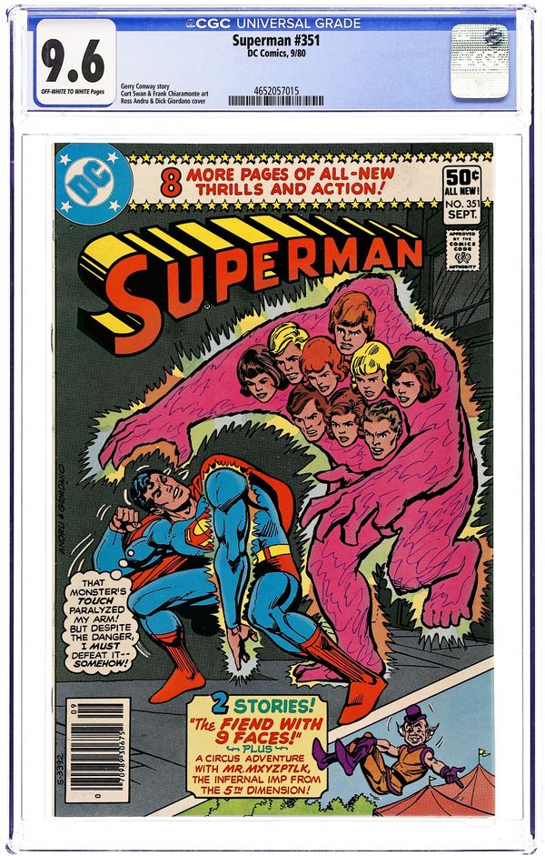 Cover pencils by Ross Andru, inks by Dick Giordano. The Fiend With Nine Faces!, script by Gerry Conway, pencils by Curt Swan, inks by Frank Chiaramonte; Superman destroys the energy monster accidentally created by Professor Tolkein. Mr. Mxyzptlk's Circus Caper!, script by Denny O'Neil, art by Jose Luis Garcia-Lopez; Juan Garcia helps Superman get rid of Mr. Mxyzptlk at the circus. 36 Pages, Full Color. Cover price $0.50.